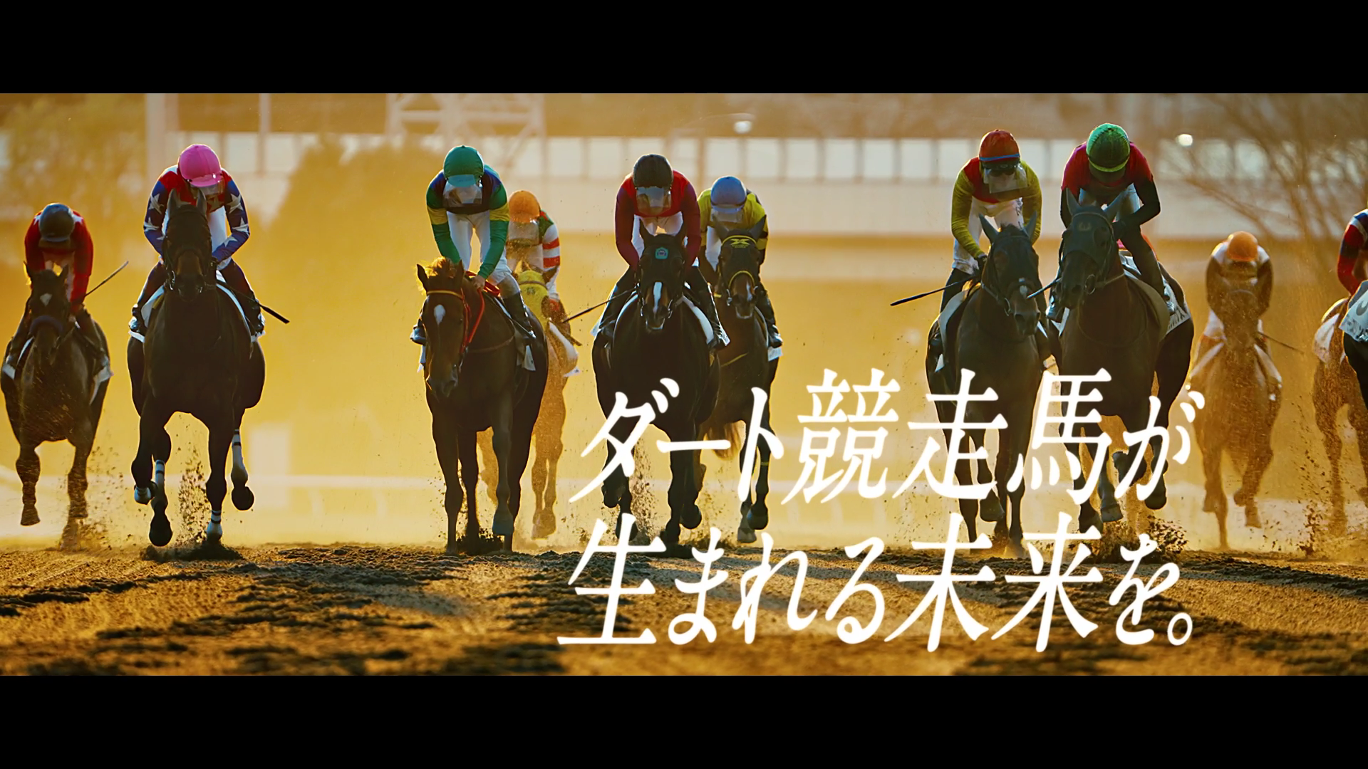 ――”ダート競馬は「可能性」の物語”というナレーションから始まる本CM。