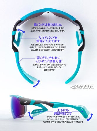 - 鼻パッドがないスポーツサングラス「エアフライ」の特長