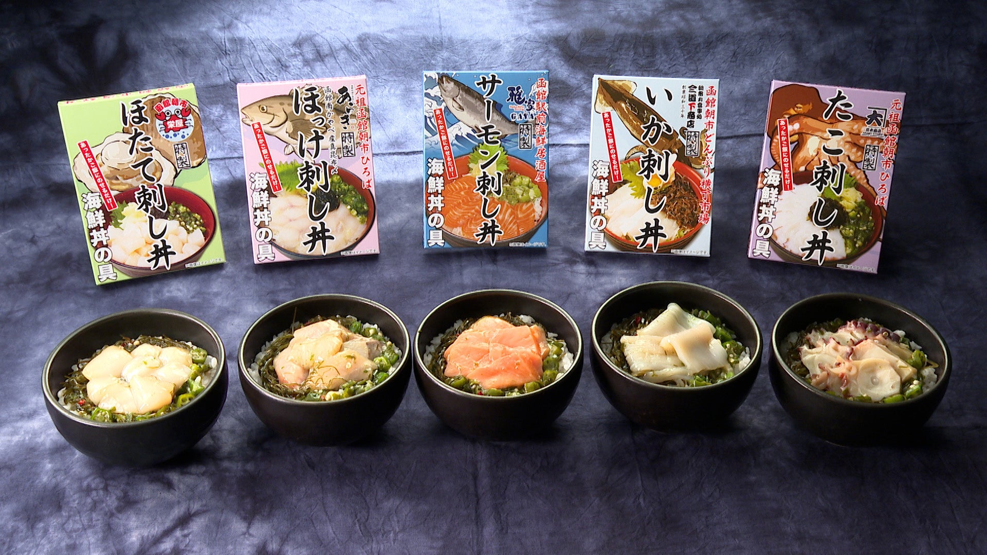 2023年7月23日(日)午後4時~の第1話では、「海鮮丼5種のパッケージ誕生秘話」を放送。函館の朝市で人気の丼を厳選した「函館朝市巡りセット海鮮丼5種」の出品を求めて、敏腕グルメハンターが大活躍します。