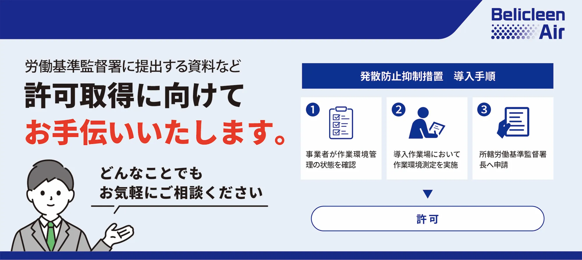 2023年3月厚労省から有機則対策となる発散防止抑制装置として正式許可を取得しております。