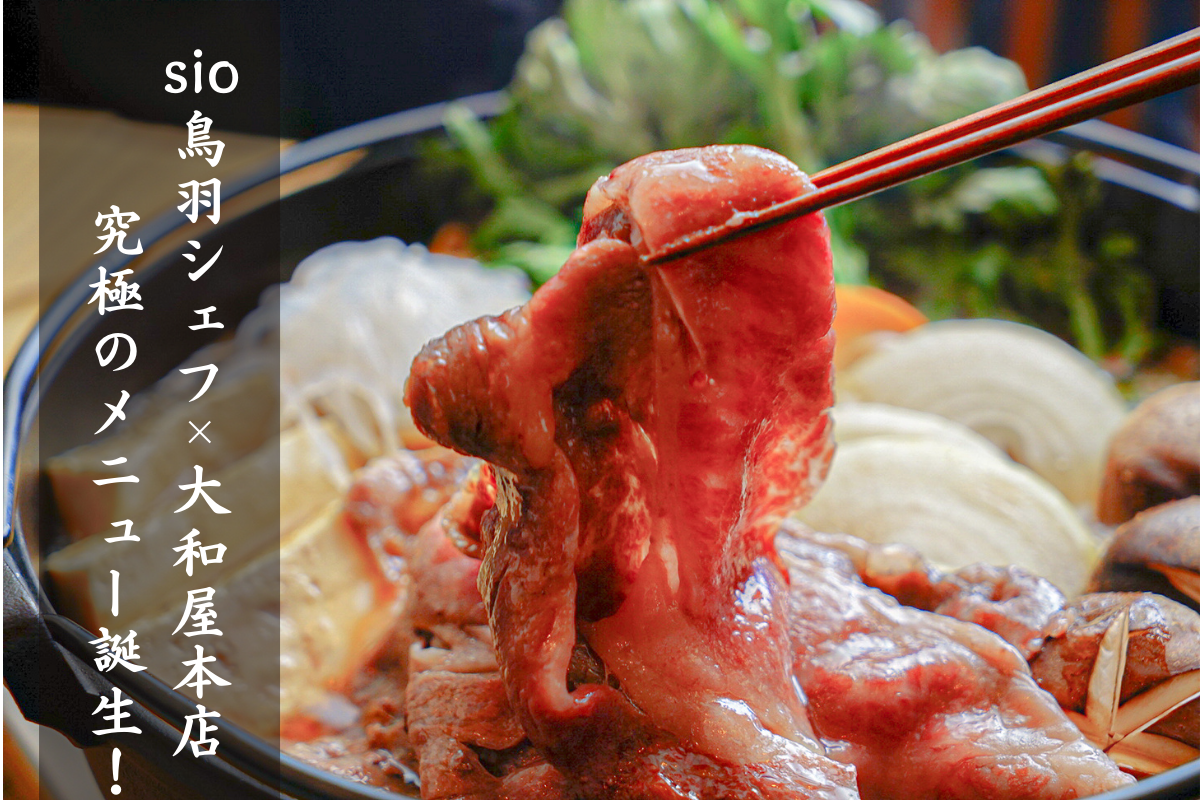 有限会社大和屋本店旅館(以下:大和屋本店、所在地:愛媛県松山市道後、代表取締役:奥村 敏仁)は、2022年6月13日(月)より、ミシュランガイド東京2020~2022 一つ星掲載店である代々木上原のレストラン「sio」のオーナーシェフ・鳥羽周作氏(以下:鳥羽シェフ)と共同製作した『究極のすき焼きコース』を大和屋本店にて販売いたします。