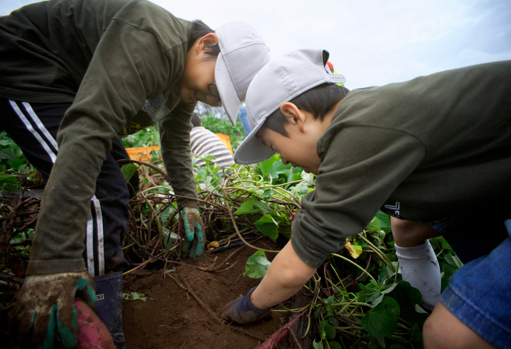 農業体験では、地元農家の方々や工藤氏より収穫の方法や注意点を教わりながら、約2時間かけてネギとサツマイモを収穫。子供たちは全身を使って土と向き合い、「食べ物を育てる大変さ」と「自分の手で収穫する喜び」を感じていました。