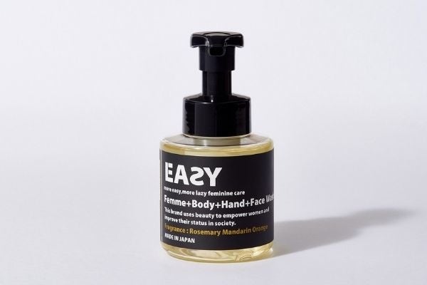 EAZYは、デリケートゾーンケア発想でありながら、ボディケア、フェイスケア、ハンドケアの機能まで1本に凝縮した、今までにないオールインワンブランド。