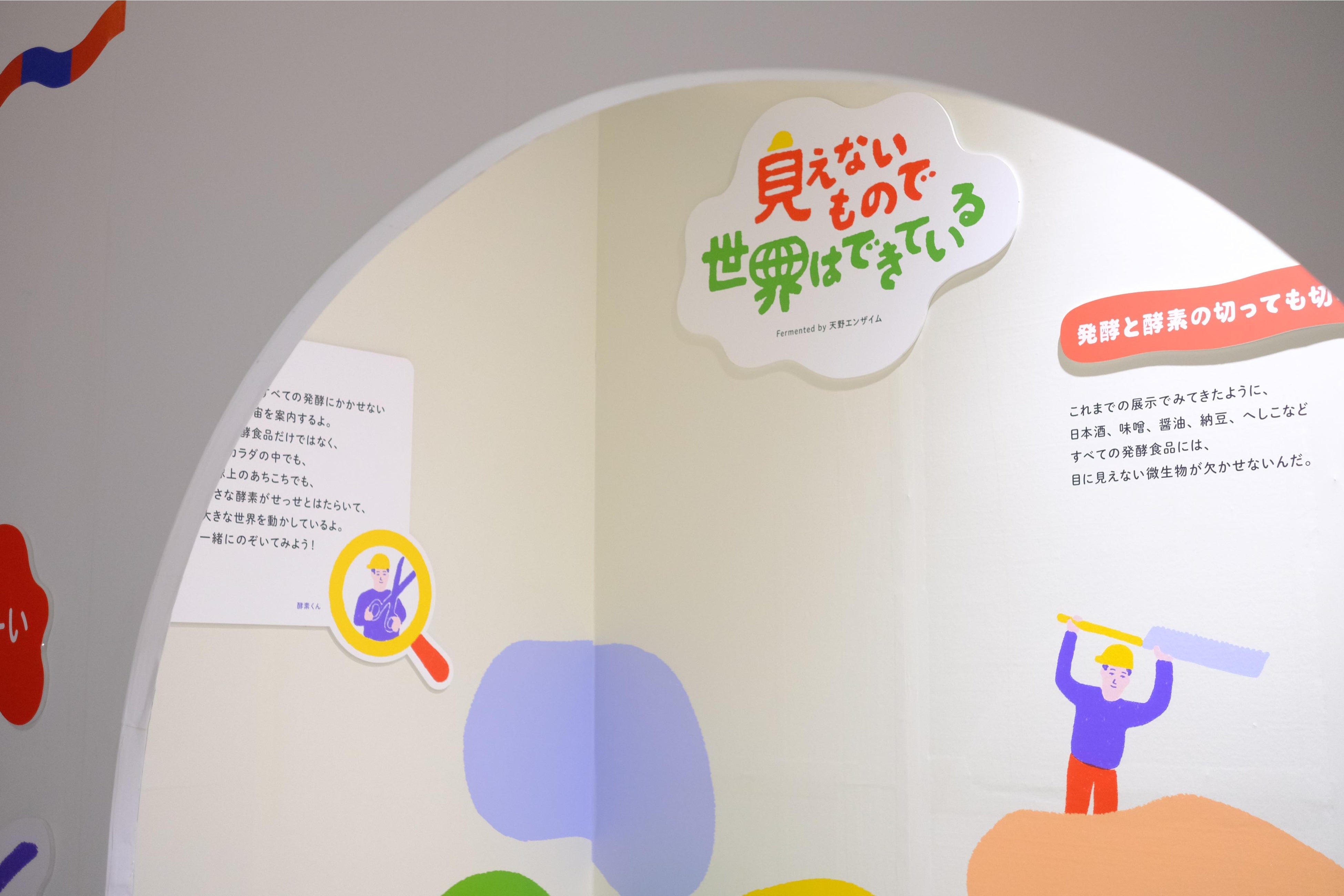 「見えないもので世界はできている」展は9月17日(土)〜12月4日(日)の期間限定で開催となります。酵素をより身近に感じてもらえる4つのコーナーを通じて楽しみながら酵素の働きを学ぶことができる工夫を凝らしました。