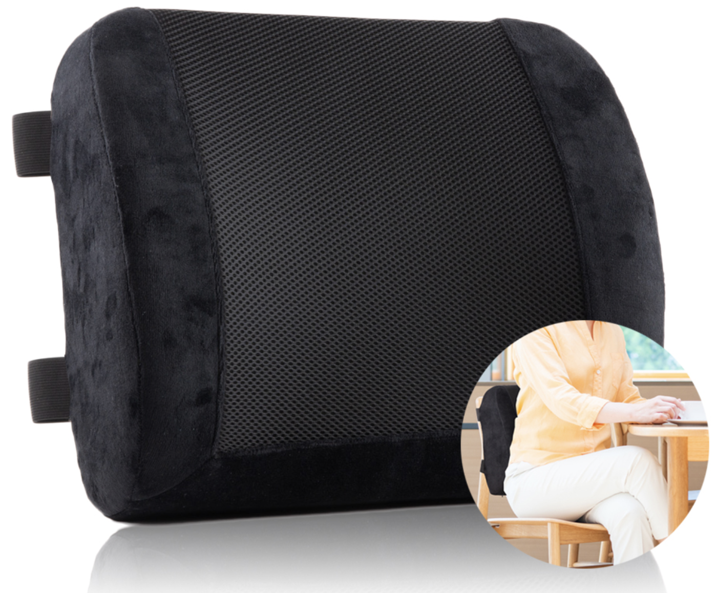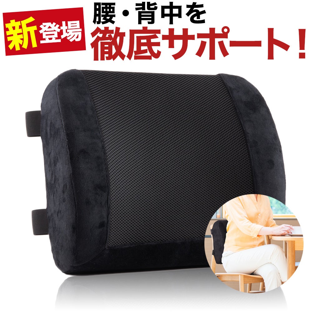 [製品特徴] オフィスチェアや自宅の椅子の腰部分に置いて使用する腰用のクッション。人間工学に基づくアーチ設計で腰、そして姿勢をサポート。