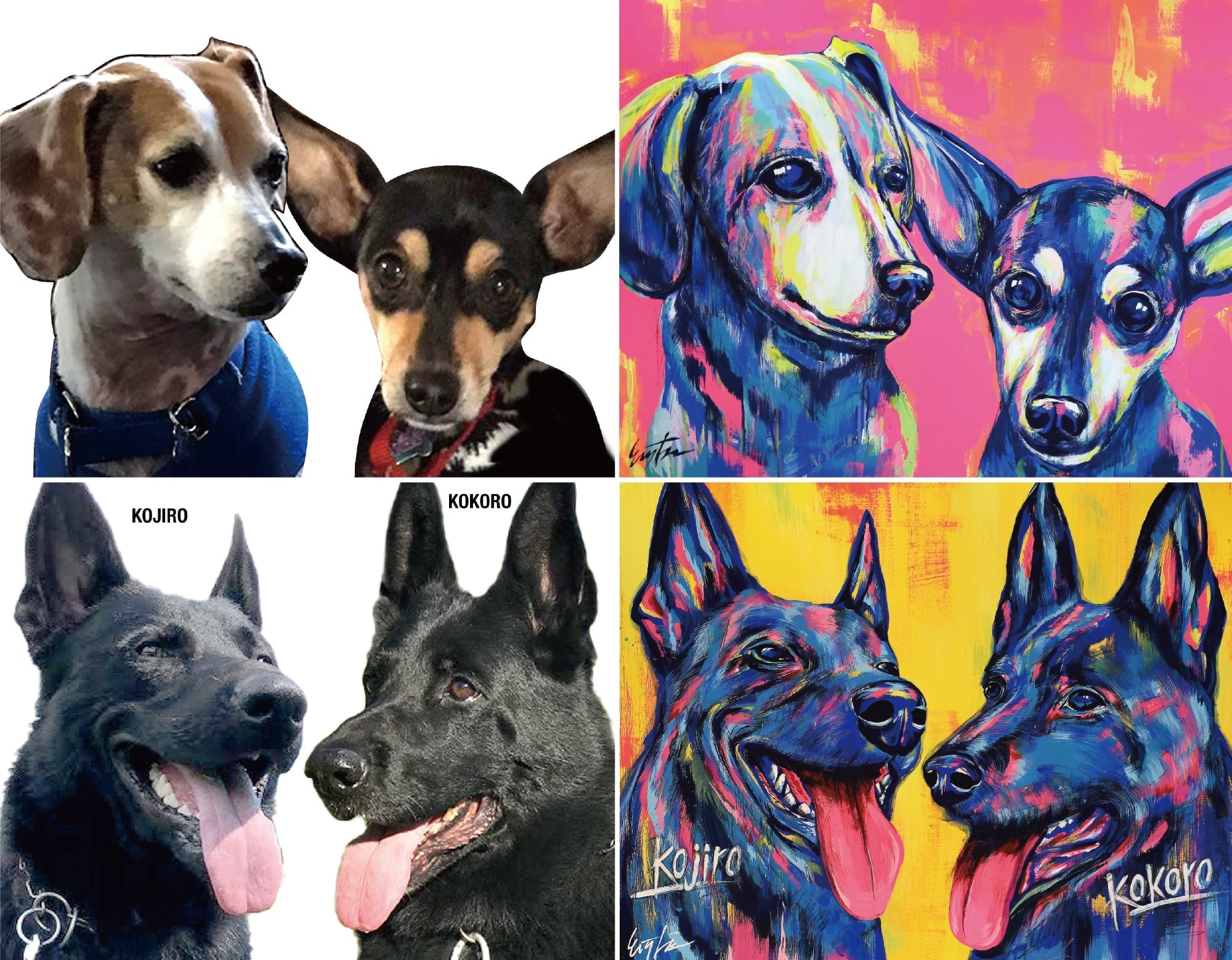 愛犬が与えてくれる無償の愛が色鮮やかに見えるのをそのままキャンバスに描いています。展示会にて、世界で一枚だけのアートのオーダーを受付いたします。