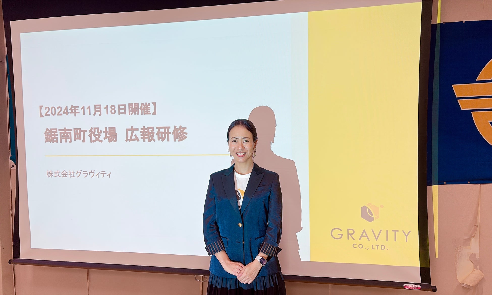 【経営のお悩み解決に「広報PR」という選択肢を】をモットーに広報PR代行業務を展開する株式会社グラヴィティ(所在地︰千葉県千葉市 代表取締役:山田佳奈恵)は、2024年11月18日(月)に株式会社千葉日報デジタルと連携し、千葉県の南部に位置する鋸南町役場にて、60名を超える職員に向けてSNSを活用した広報活動をテーマにした研修を実施しました。