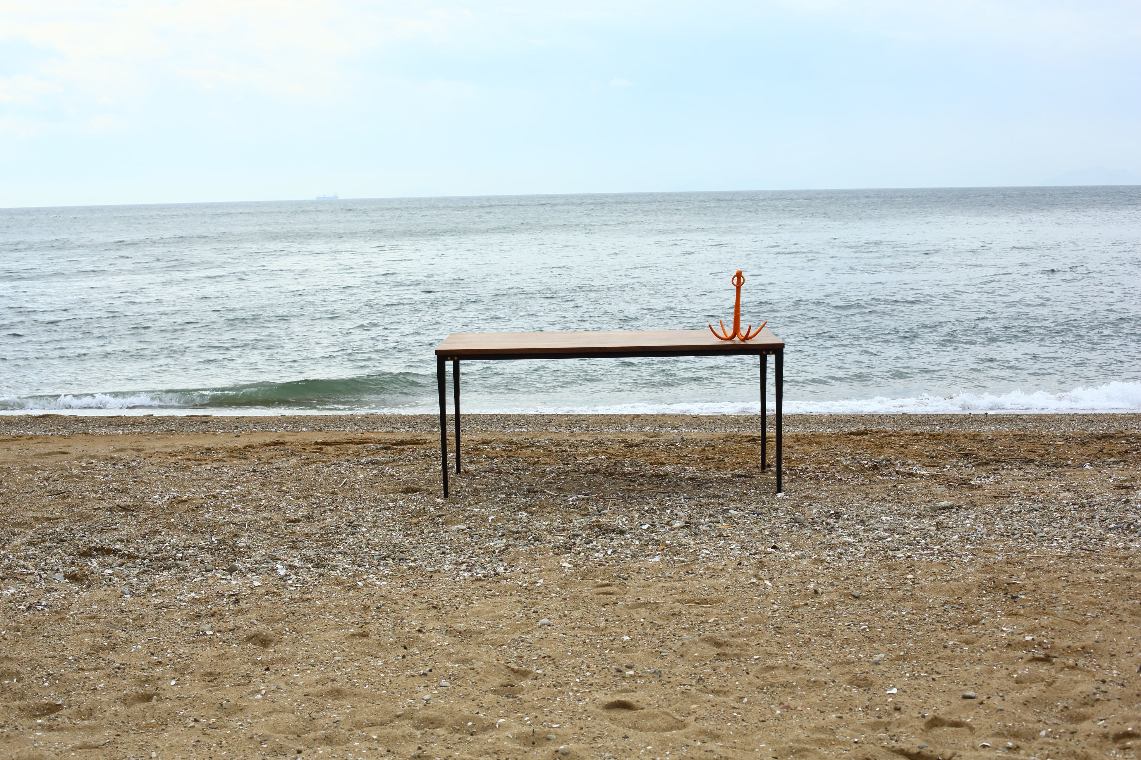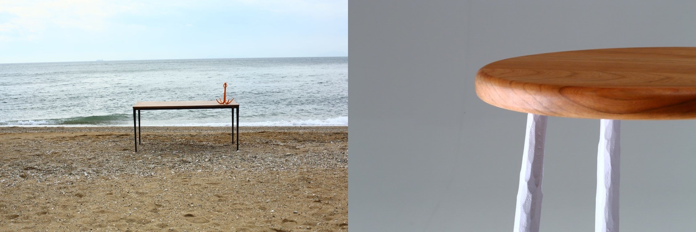 「TAonTA」の特徴は、型を使わず、鉄を直火で焼いてハンマーで叩いて成形する自由鍛造を取り入れているということ。そのためテーブルやスツールの脚には、独特の凹凸ができ、それが味わいを生む。高度な技術を要する金属製品を得意とする三暁の3D設計技術、最新の工作機械と組み合わせて、デザイン性に優れた家具の製造・販売を行っている。