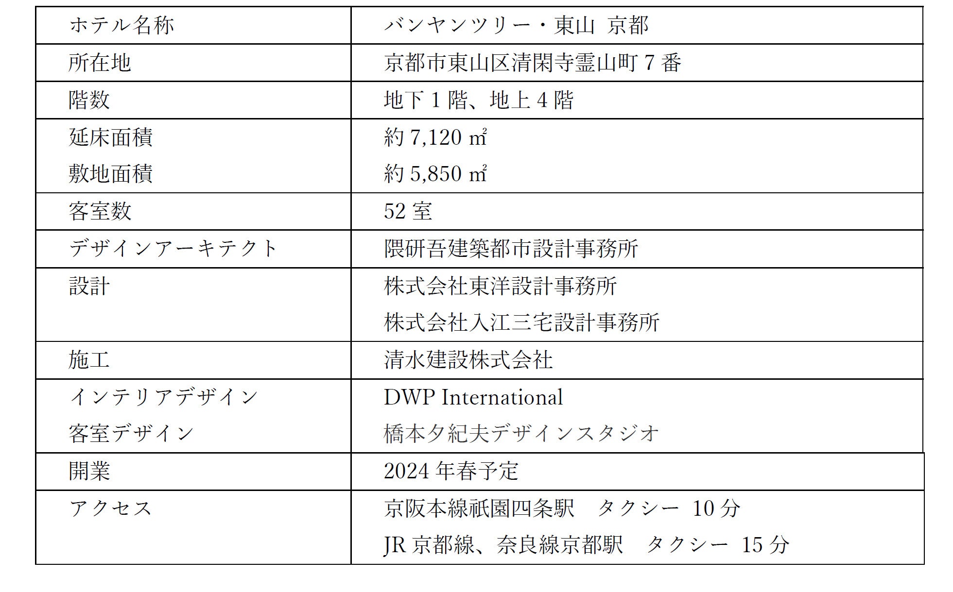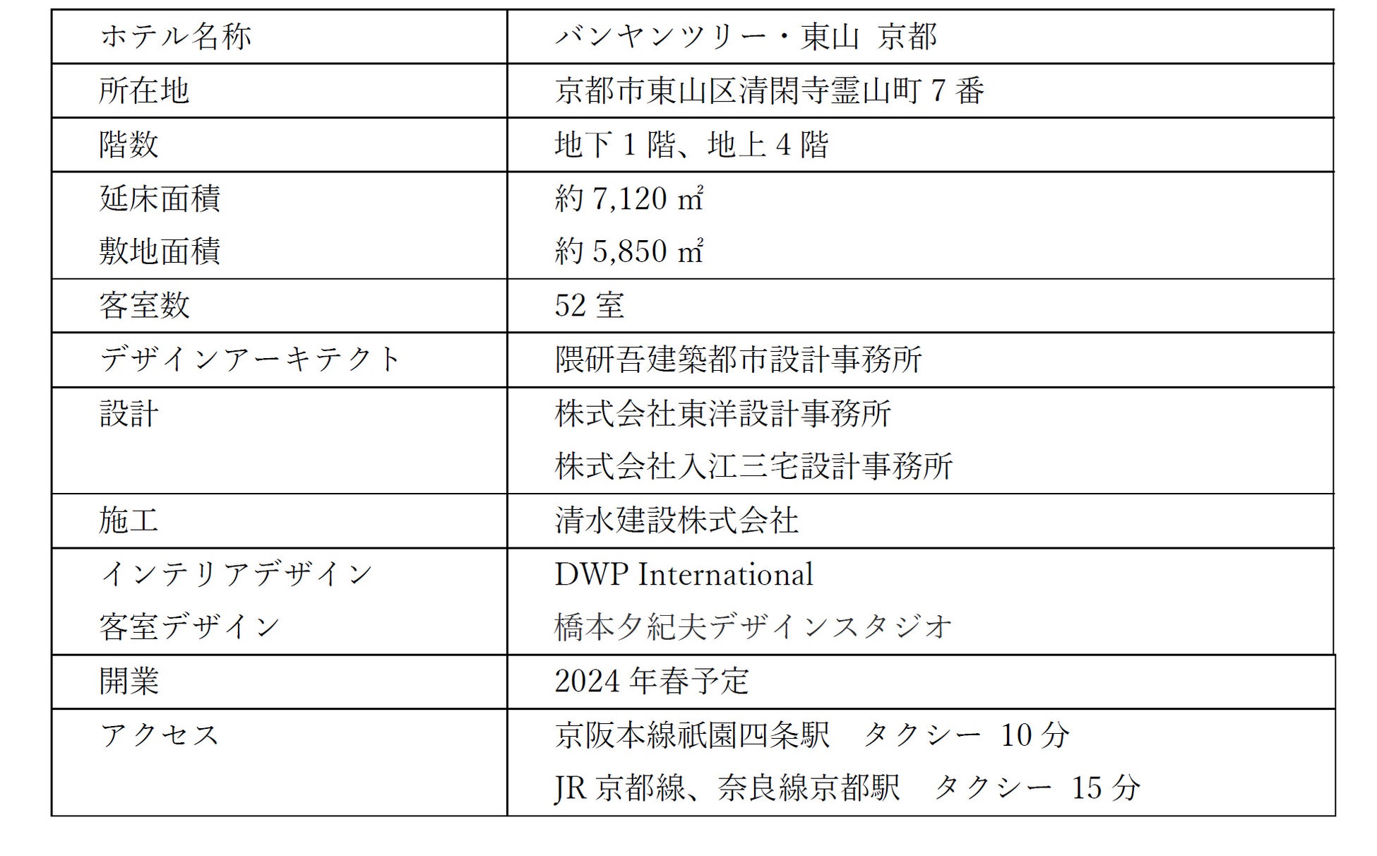 2024年春開業予定「バンヤンツリー・東山 京都」着工のお知らせ