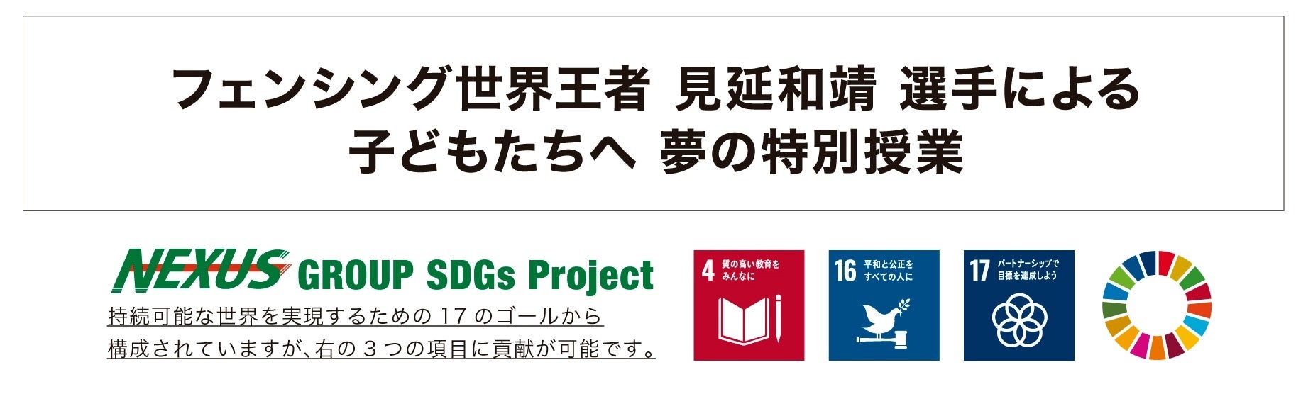 今回の特別授業を通じて、フェンシング競技の普及拡大や参加された生徒のみなさんにとって夢や目標にチェレンジする糧になればと思います。私たちは「NEXUS SDGsプロジェクト」として夢を持つ大切さをこれからも具現化して参ります。