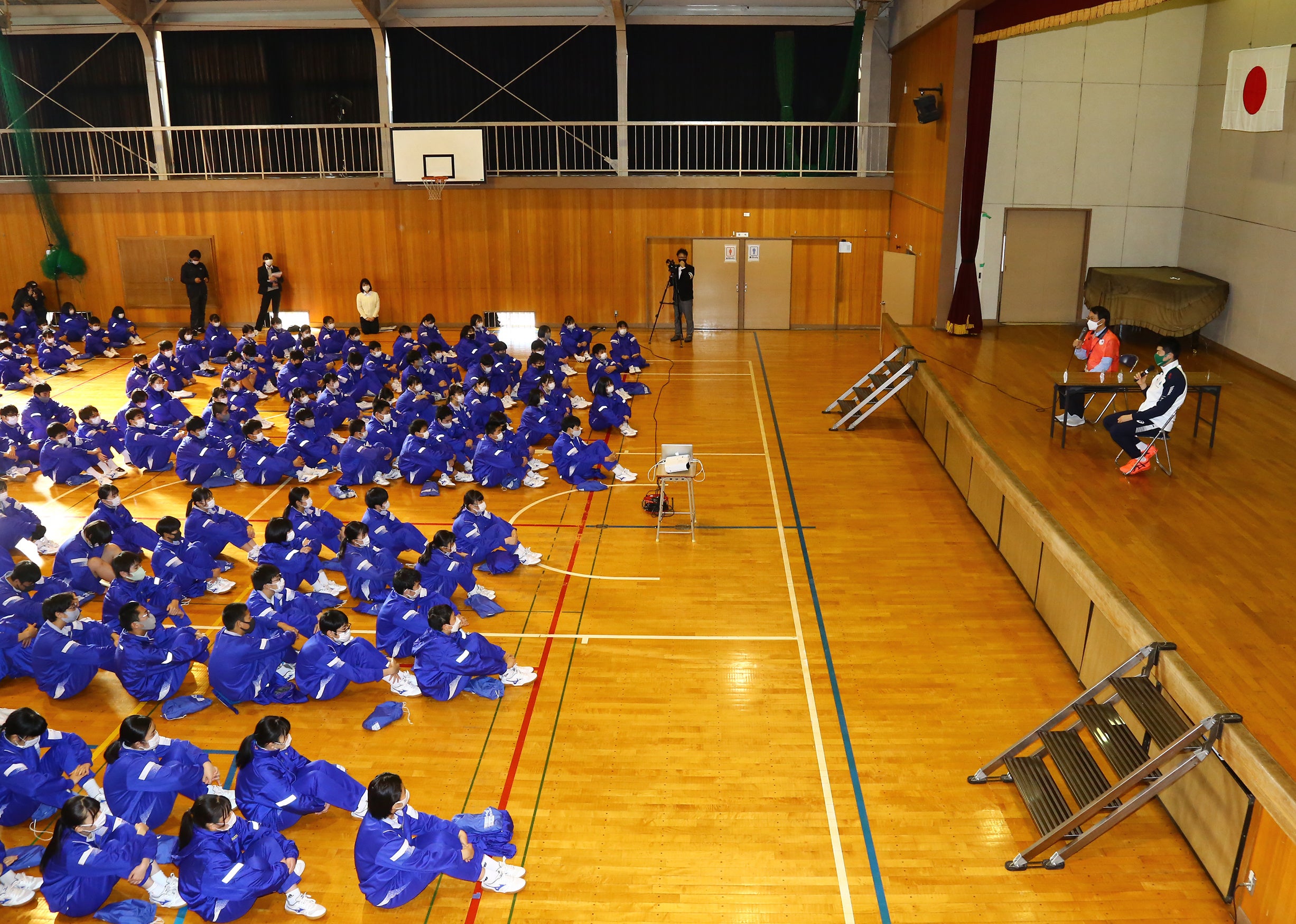 日程:2022年1月13日(木)午前/高崎市立 寺尾小学校(高崎市寺尾町)5、6年生の約100名、午後/高崎市立 高南中学校(高崎市上滝町)全校生徒の約400名です。