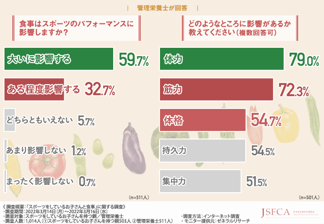 9割以上の管理栄養士が食事がスポーツに影響があると回答