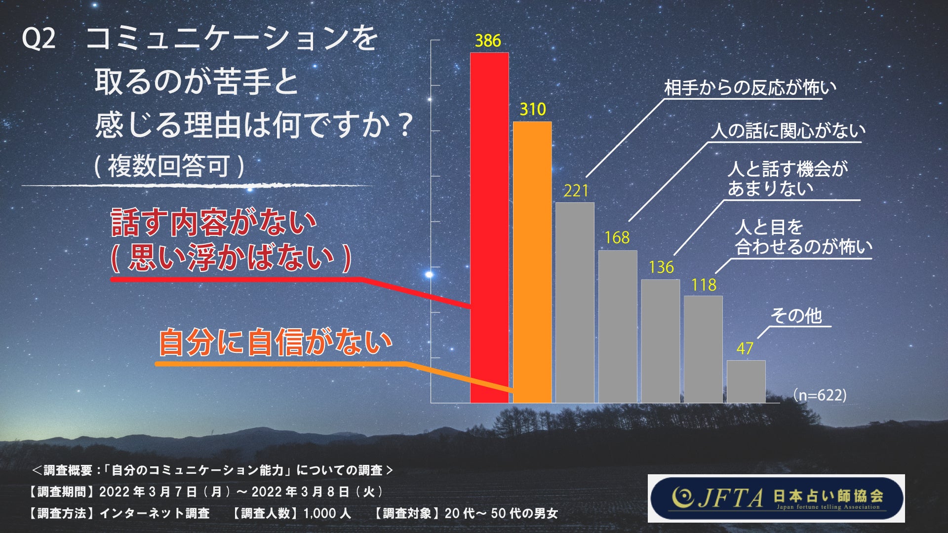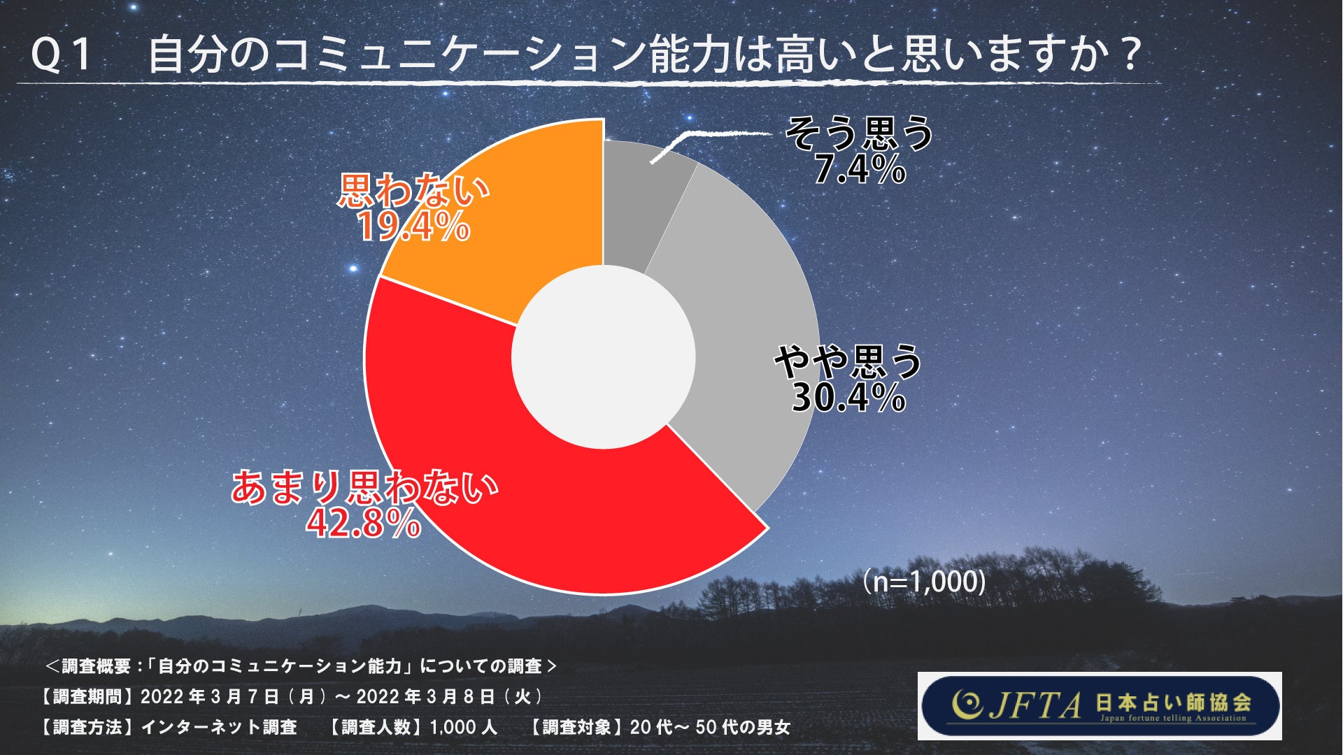 そこで今回は、日本占い師協会(https://www.uranai.org/ 東京都中央区)が実施した「自分のコミュニケーション能力」についてのアンケート結果から、現代におけるコミュニケーションに対する悩みを見ていきましょう!!