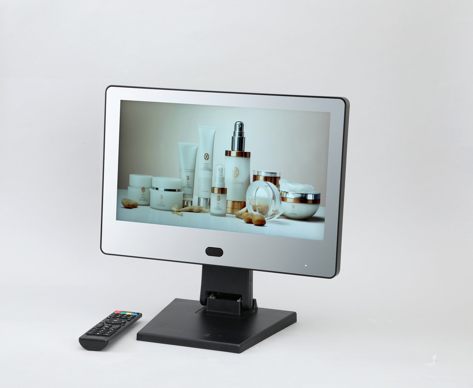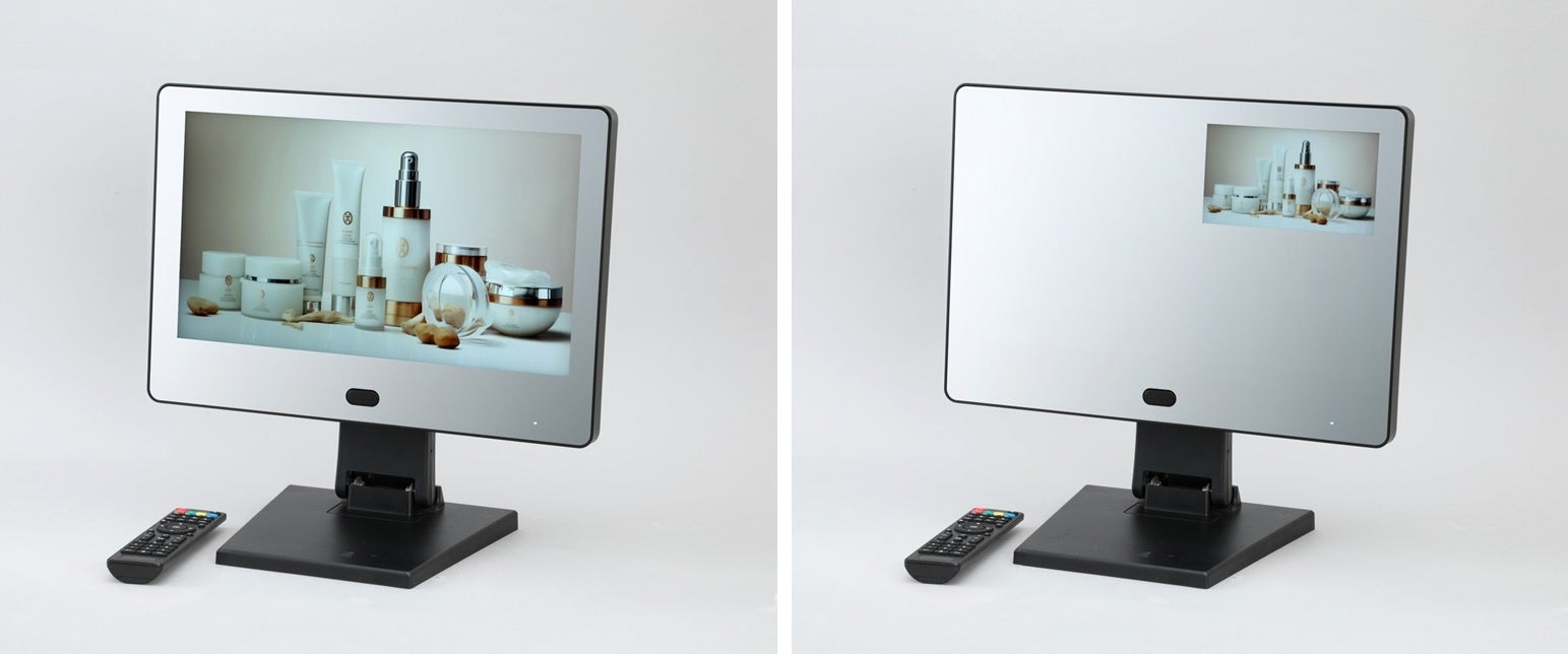 鏡とサイネージ広告を兼ねた1台2役の 「ミラーモニター」