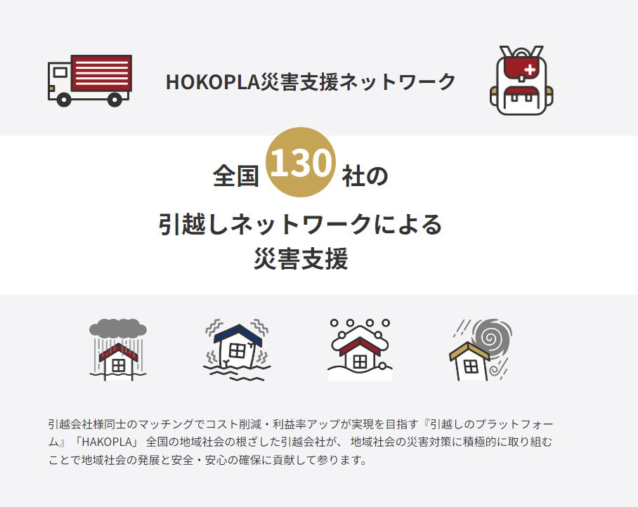 引越業界のプラットフォーム「H A K O P L A」(株式会社リベロ)が全国災害支援ネットワークを構築