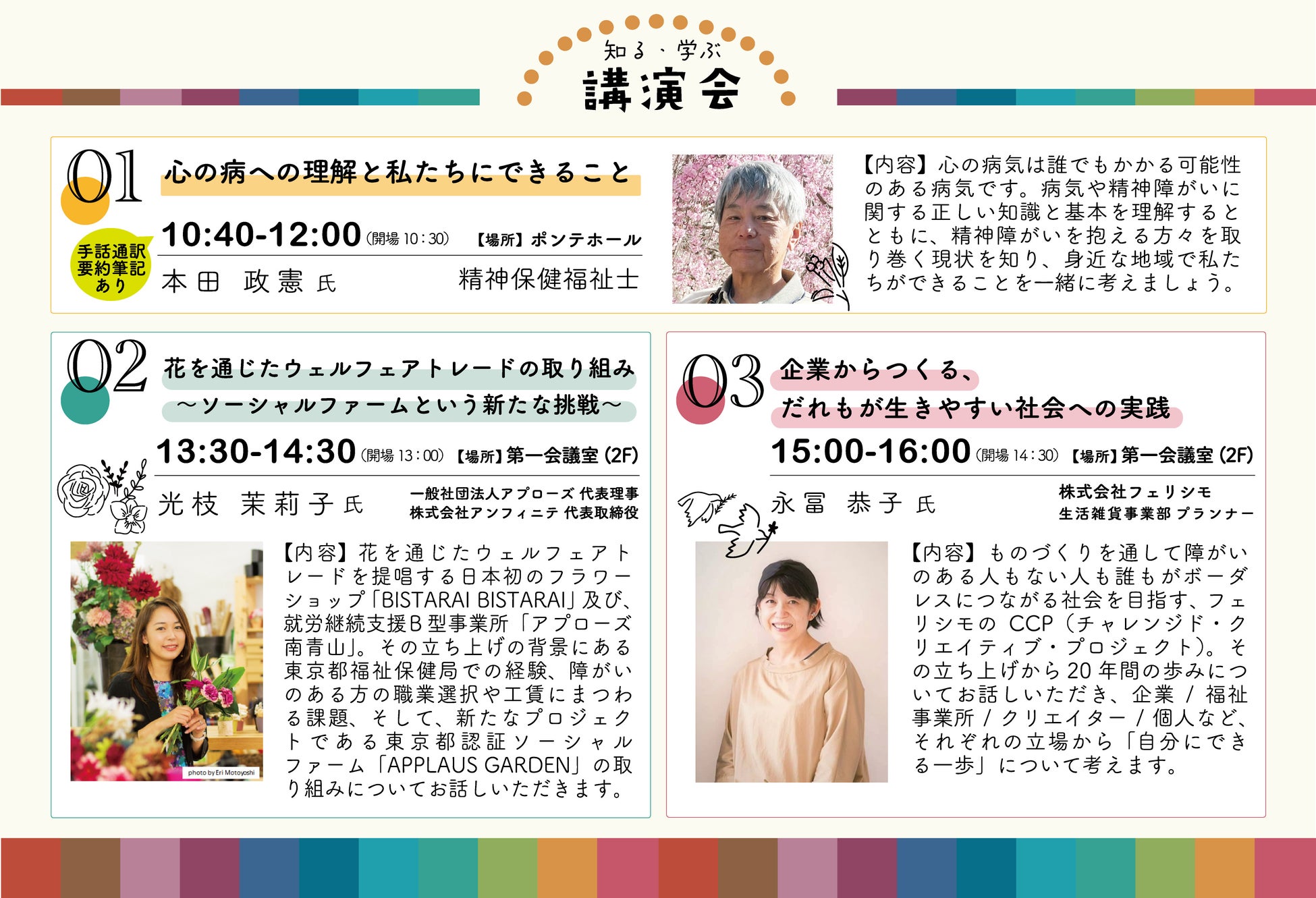 【内容】花を通じたウェルフェアトレードを提唱する日本初のフラワーショップ「BISTARAI BISTARAI」及び、就労継続支援B型事業所「アプローズ南青山」。その立ち上げの背景にある東京都福祉保健局での経験、障がいのある方の職業選択や工賃にまつわる課題、そして新たなプロジェクトである東京都認証ソーシャルファーム「APPLAUSGARDEN」の取り組みについてお話しいただきます。
