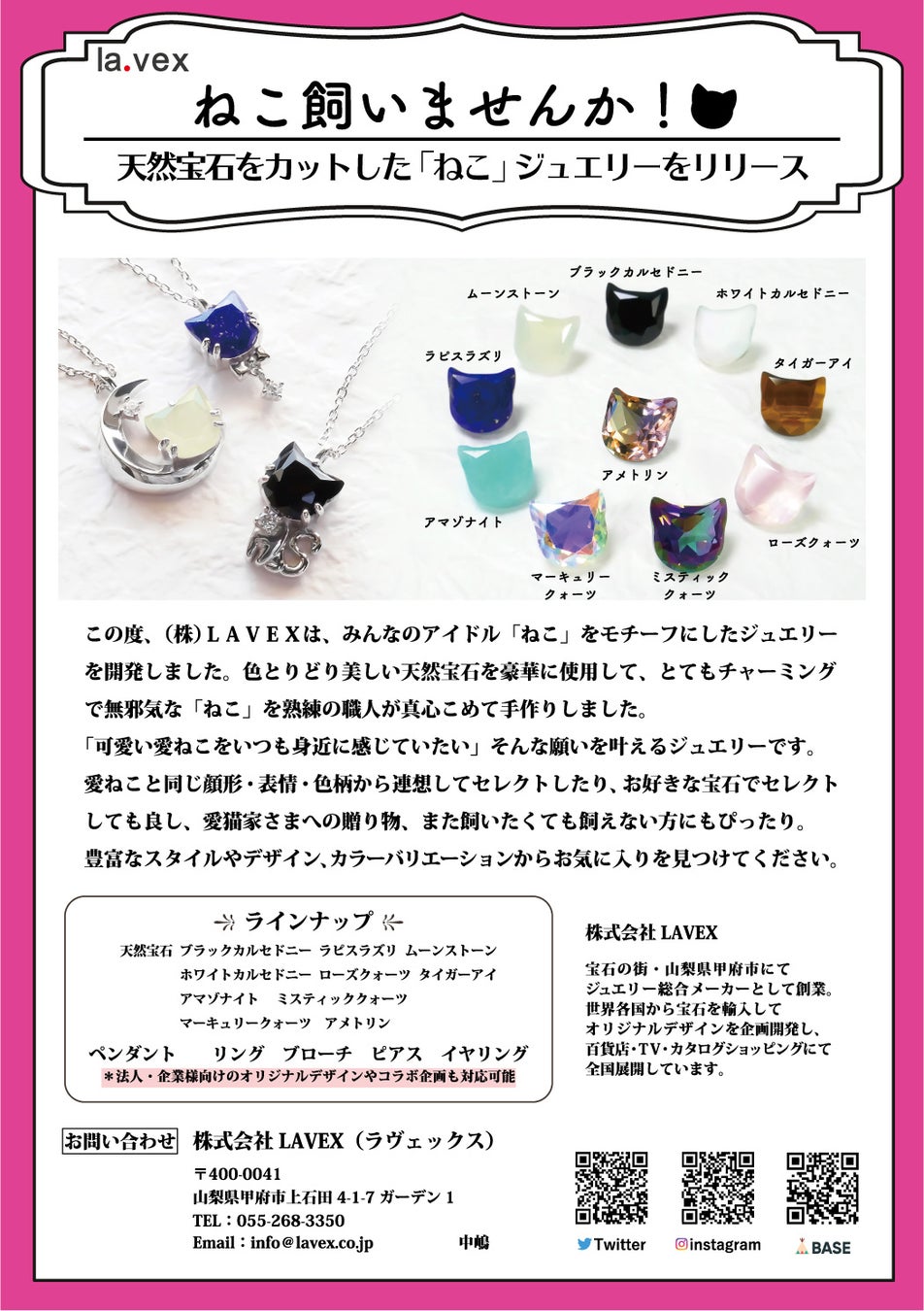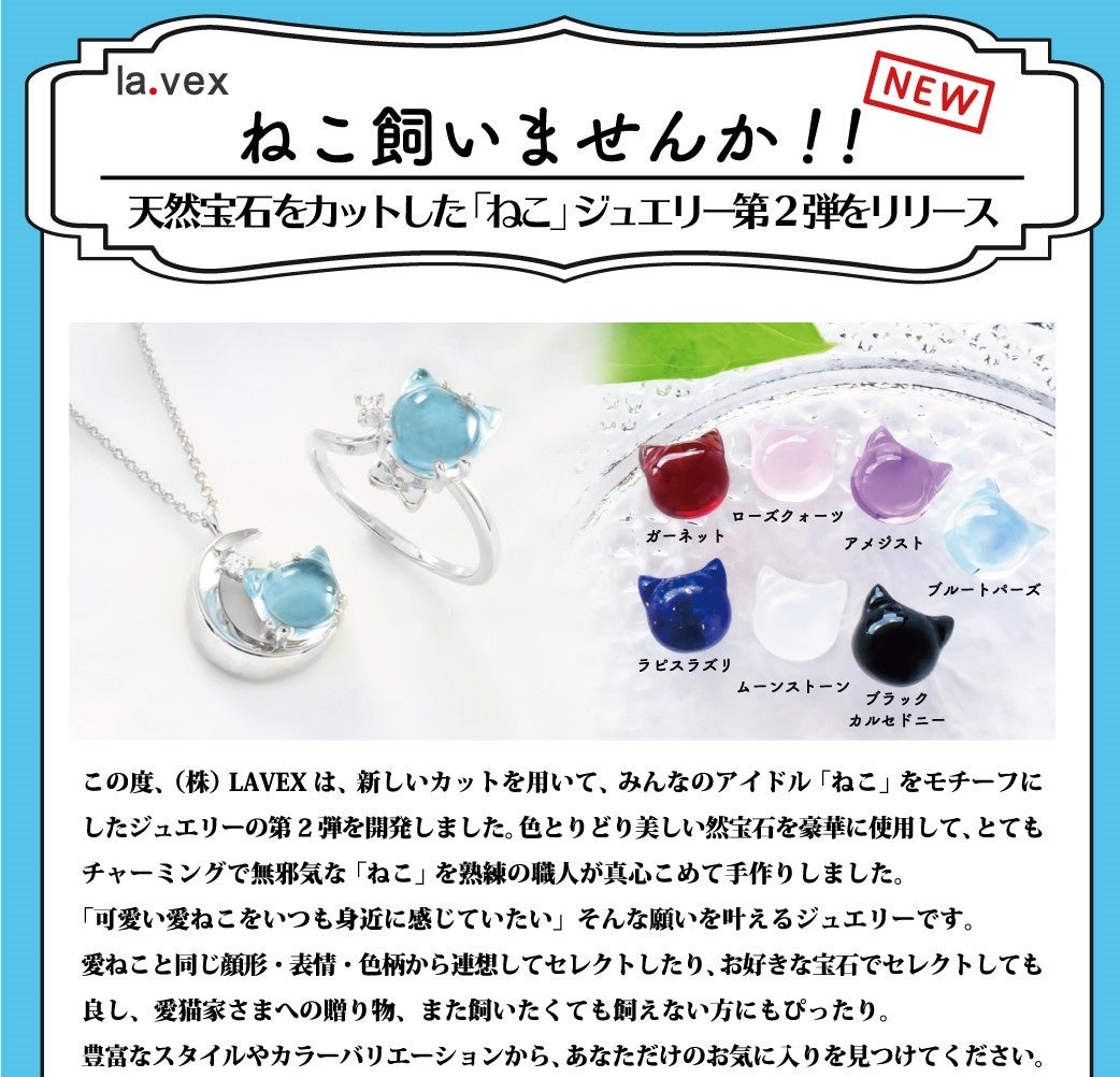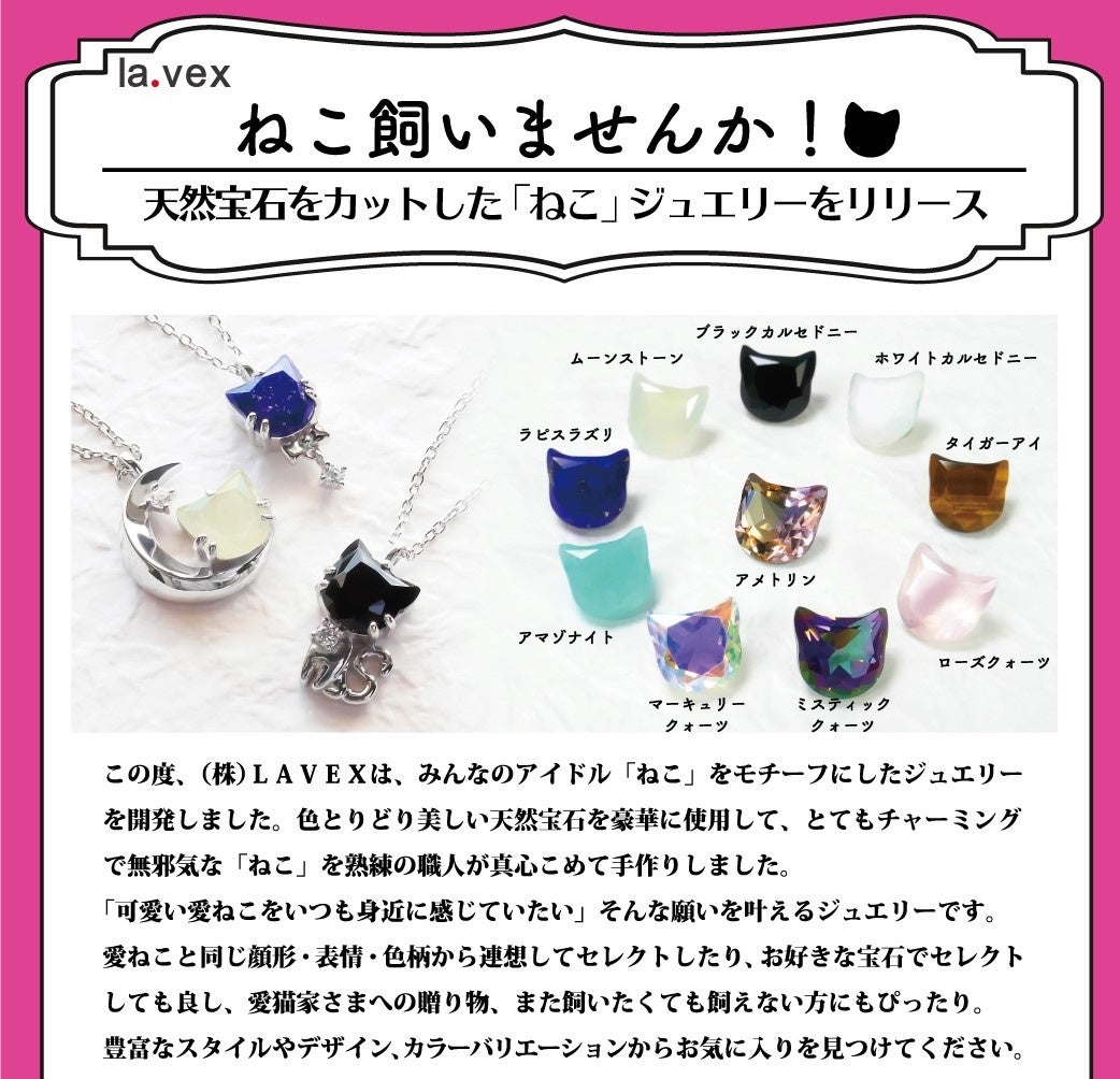 この度、(株)LAVEXは、みんなのアイドル「ねこ」をモチーフにしたジュエリーを開発した。
