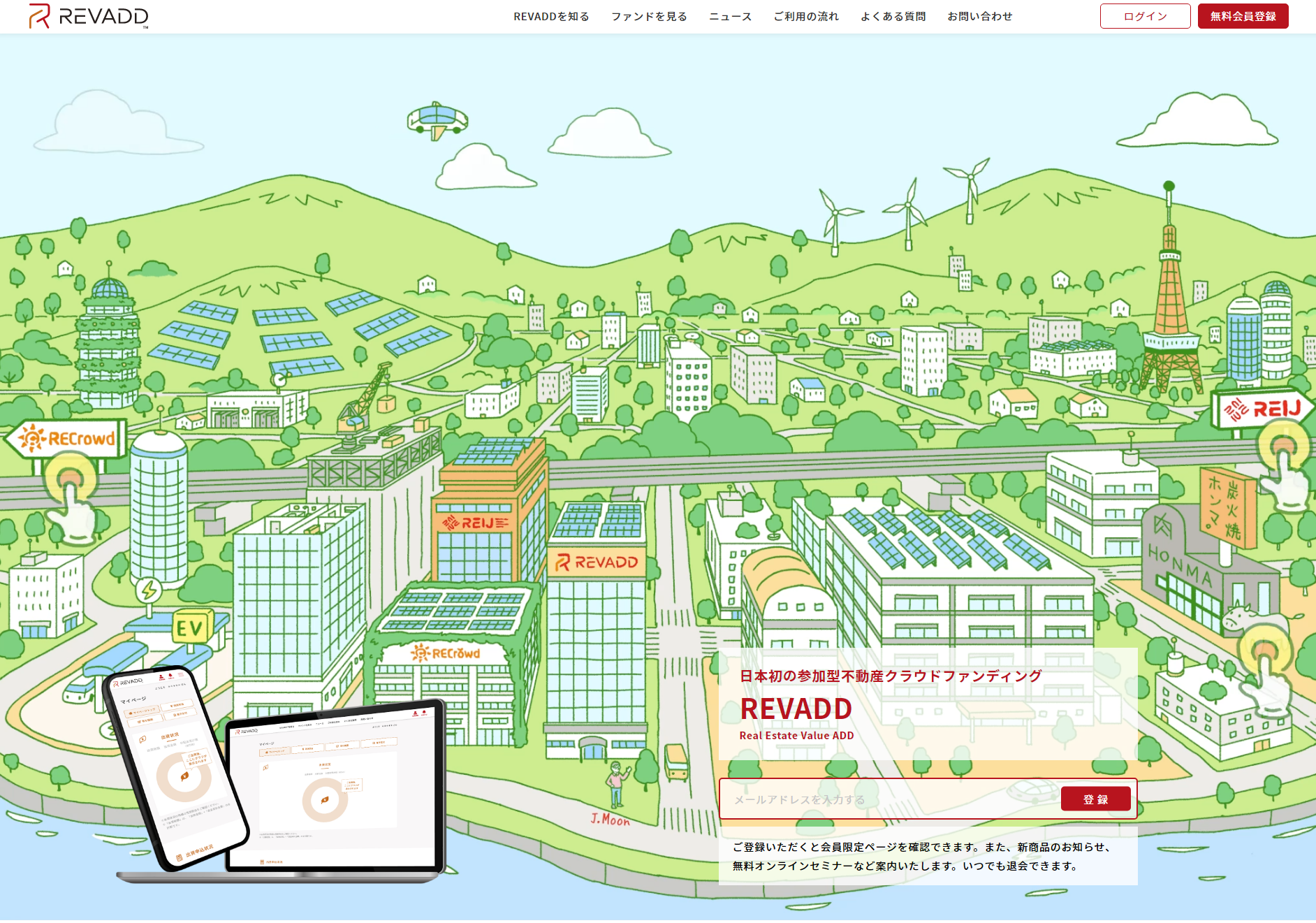 「REVADD」は、不動産に新たな価値を加えるべく、日本初個人の投資家が案件に参加できる日本初不動産投資サービスです。