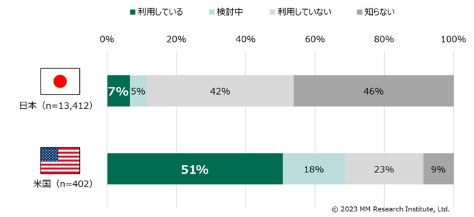 (日米におけるChatGPTの利用率比較。画像出典:MM総研のプレスリリース)