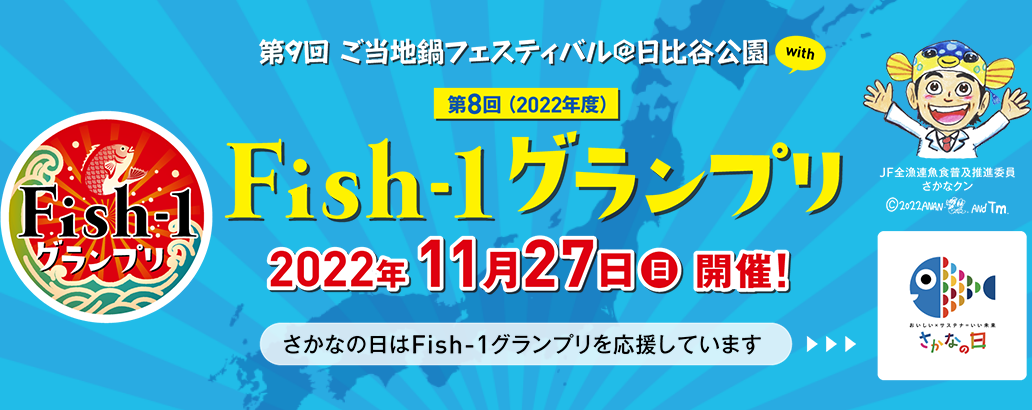 漁師自慢の魚プライドフィッシュ料理・国産水産物加工品の2部門のグランプリを競うコンテスト「第8回Fish-1グランプリ(2022年度)」が、11月27日(日)日比谷公園で開催!!