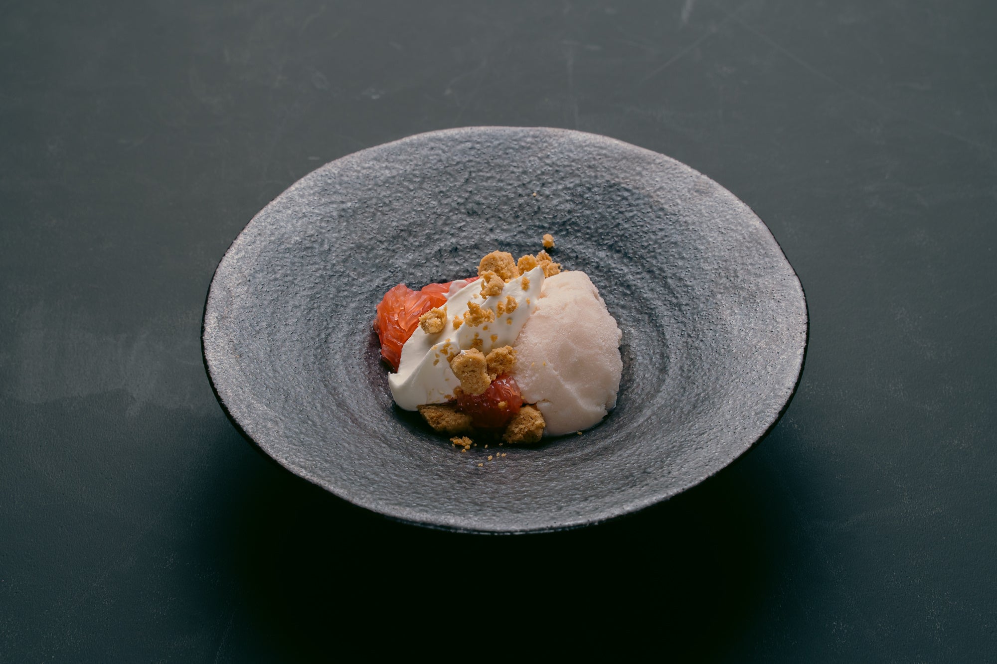 旬のフルーツ 柑橘のジェラート ヨーグルト 生クリーム クランブル