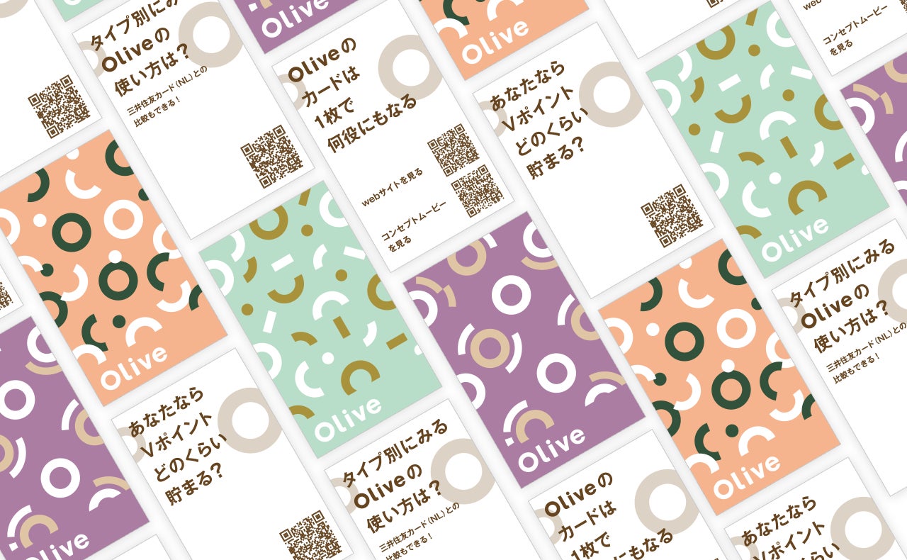 持ち帰りいただけるコンテンツカードを設置しており、店舗滞在時だけでなくお客さまのご都合のよいタイミングでOliveに触れていただけます。