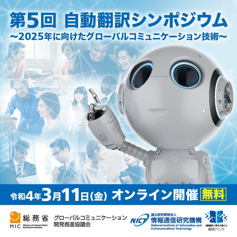 ※本シンポジウムは、昨年度まで実施していた「自動翻訳シンポジウム」及び「グローバルコミュケーションシンポジウム」を今年度は統合して開催するものです。