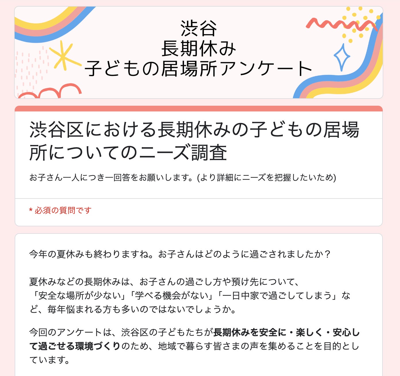 11月7日(金)開催:渋谷区民1,000件超の回答「長期休みの子どもの居場所ニーズ調査」報告会
