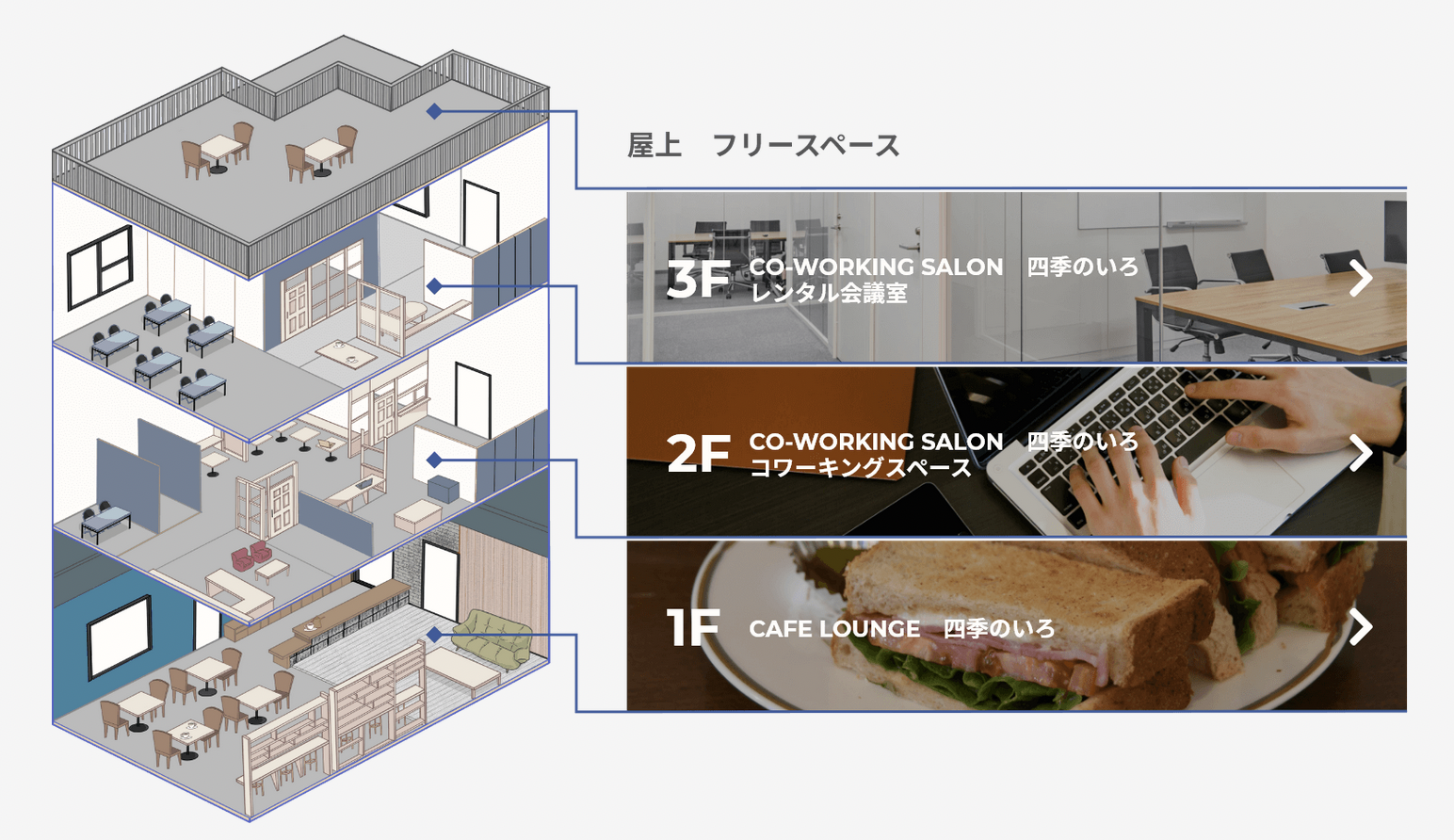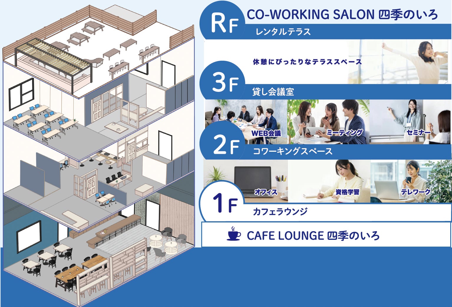子育て世代・副業に嬉しい、新たな働き方改革に適合。カフェ併設型コワーキングサロン・レンタル会議室&イベントスペースを完備した複合施設「四季のいろ」が2022年8月5日(金)に千代県庁前にオープン。