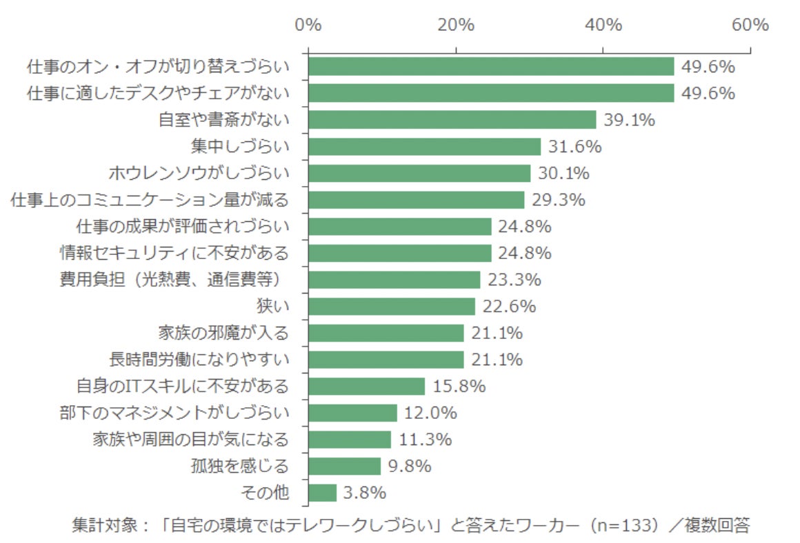 ・在宅勤務の不満 (出典:ザイマックス総研研究調査)