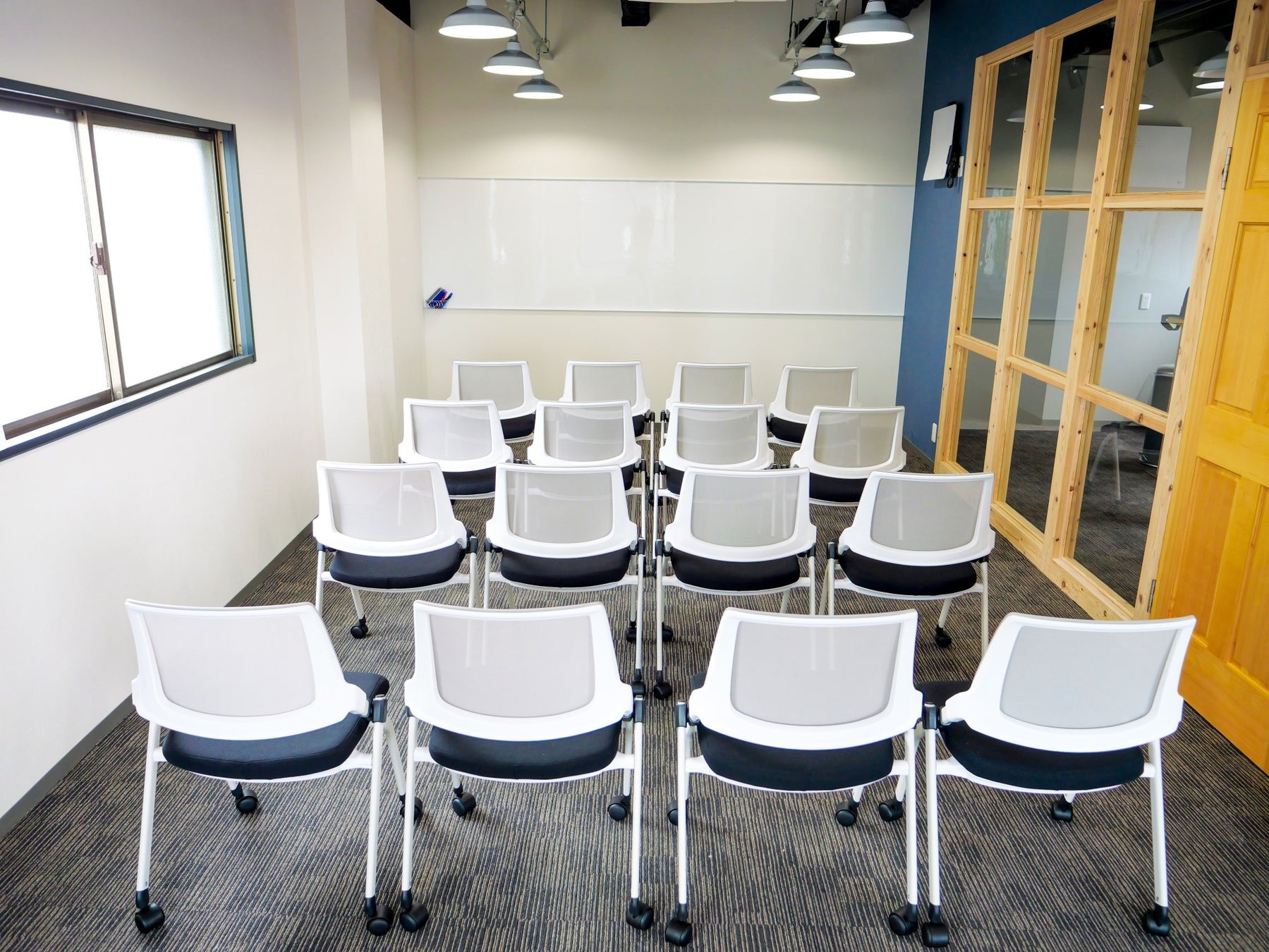 - 会議室利用:1,500円〜/1時間(税込)(無料貸し出し:プロジェクターセットWEB会議用ツール等) ※定員2名〜28名(椅子のみ最大46名)※会員・非会員料金内容が異なります。