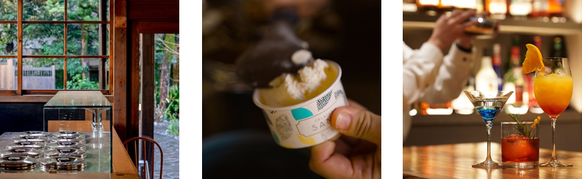 WORLD GELATO CHEFS TOP100に選ばれた松本氏によるSANTiのジェラートはご宿泊の方は何度でもお召し上がりいただけます。また、夜はご宿泊者様限定の蔵BARでクラフトビールや土肥の柑橘を用いたオリジナルカクテルをお楽しみいただけます。