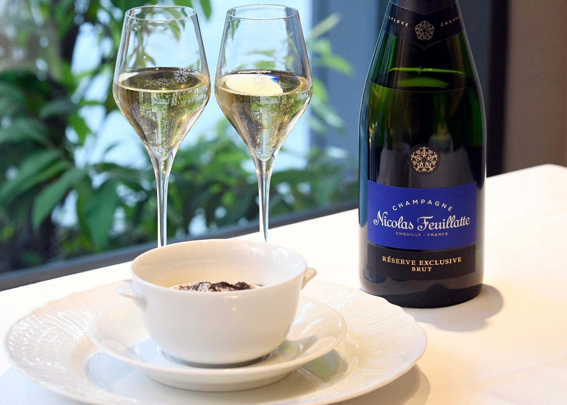 シェフのコメント:「ニコラ・フィアットのシャンパンは季節のものに合うため、素材を活かしシャンパンとバランスよく召し上がっていただけるメニューを考案しました。」