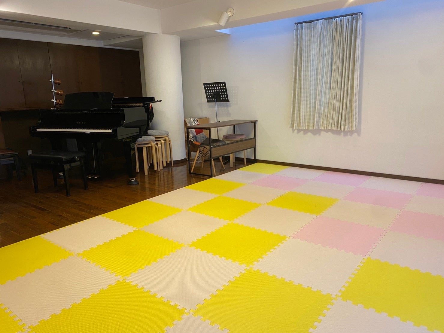 東京桜台教室。グランドアップピアノの他、電子ドラム等の楽器があります。