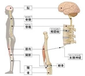 左の図は運動器を図解したものです。運動器とは身体活動を担う筋・骨格・神経系の総称であり、筋肉、腱、靭帯、骨、関節、神経(運動・感覚)、脈管系などの身体運動に関わるいろいろな組織・器官によって構成されており、その機能的連合が運動器です。筋・骨格・神経系の組織・器官にはそれぞれに独自な作用・機能がありますが、それらが密接に連動・連携して運動器としての役割を発揮しています。