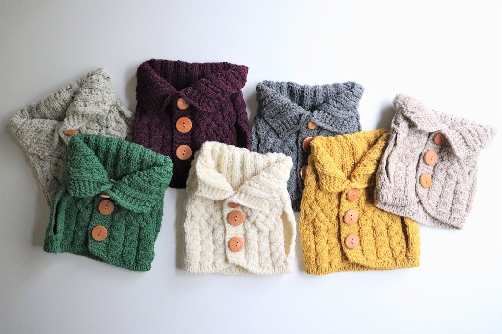 最高の品質のメリノウールを使用。アイルランド製ニットです。