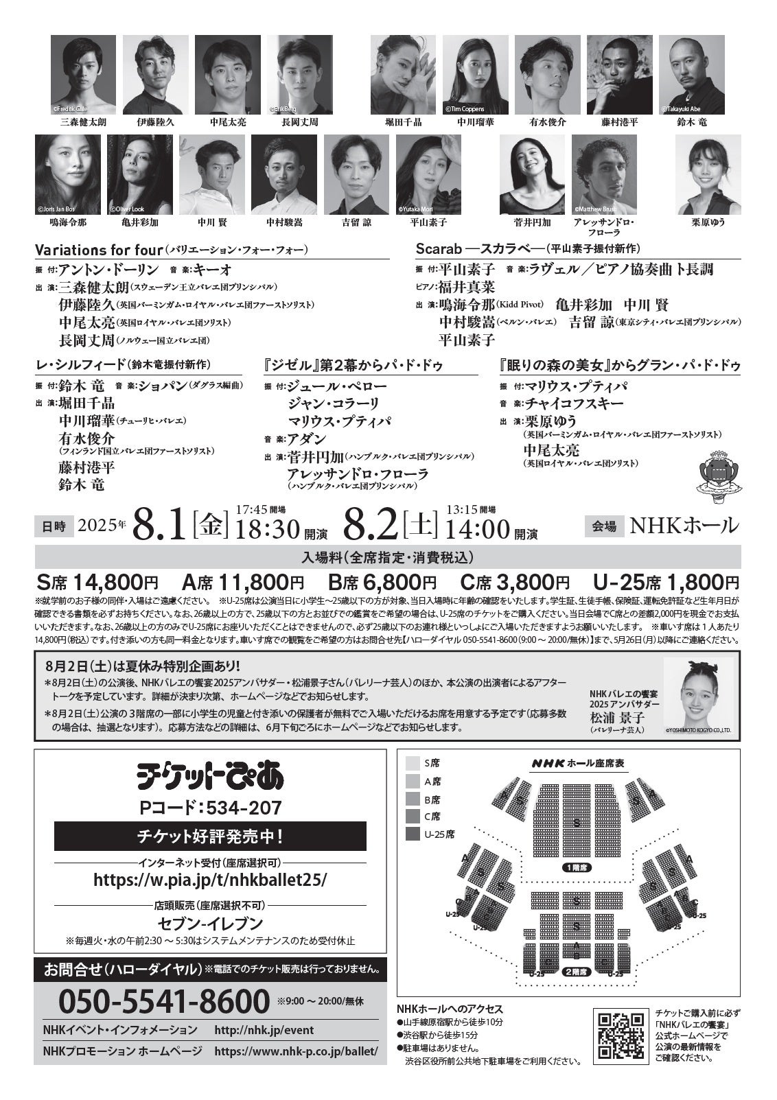 ・インターネット(座席選択可):チケットぴあ【Pコード 534-207】https://w.pia.jp/t/nhkballet25/