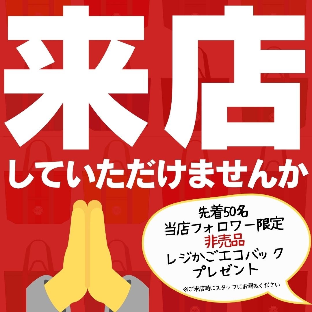 来店するだけで、非売品のオリジナルレジかごエコバックをGETできるので近くに来た際は是非ともお立ち寄りください。