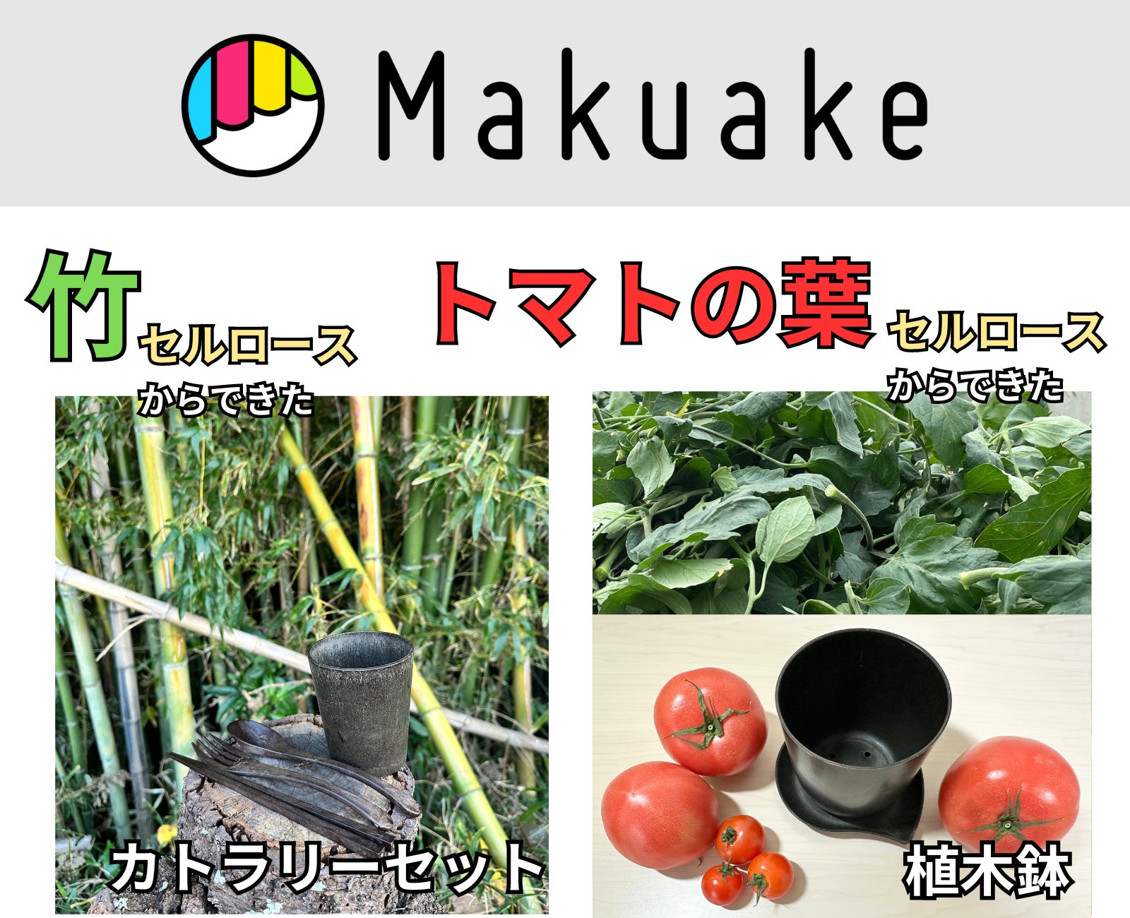 【福島県発!SDGsな新素材からできた、トマトの葉の植木鉢と竹のカトラリーセット】