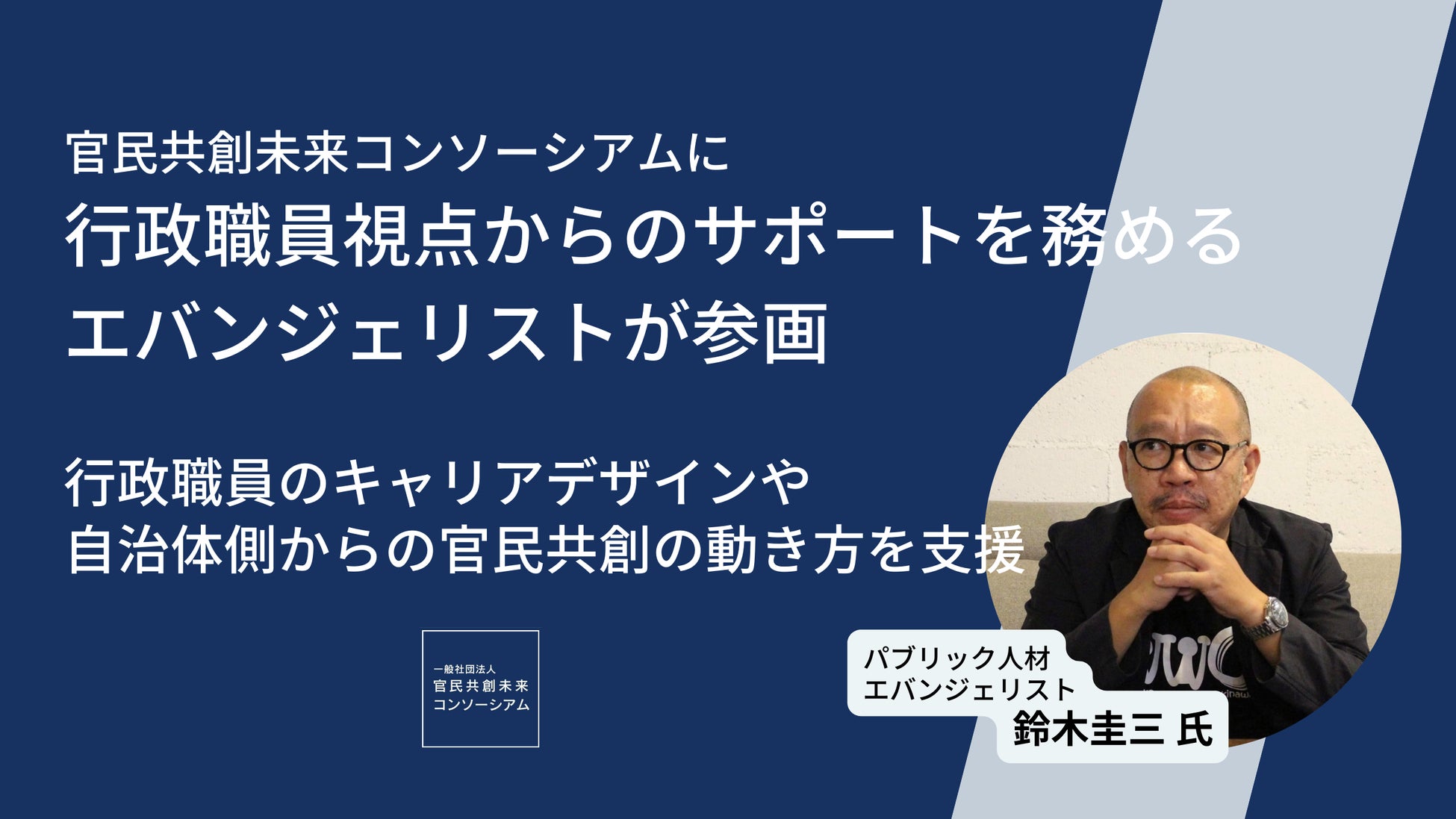 官民共創未来コンソーシアムのエバンジェリストに、現役行政職員 鈴木圭三氏が就任しました。