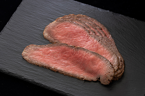 去勢牛が多い神戸ビーフの中でも、このチャンピオン牛は雌牛。雌牛が持つお肉のきめ細やかさに加え、神戸ビーフ特有の食感、香り、摂氏13℃とも言われる脂肪の融点の低さは、くどさがなくしっとりとした脂が口の中で溶けるやさしい味わいです。