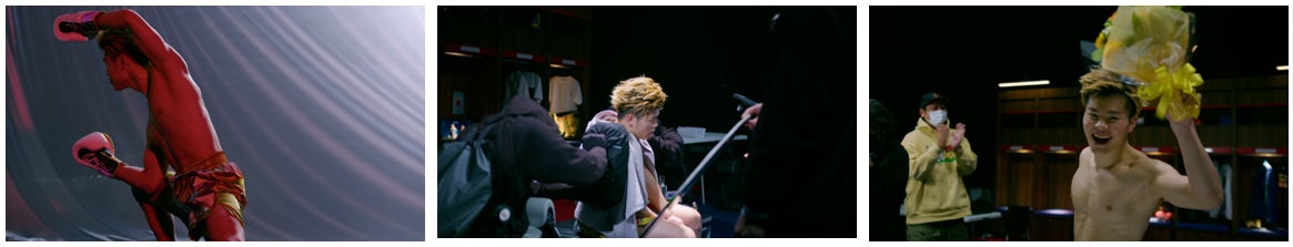 メイキング動画では、撮影の合間に見せる那須川天心選手の真剣な眼差しや、自然な笑顔に様子にご注目ください。