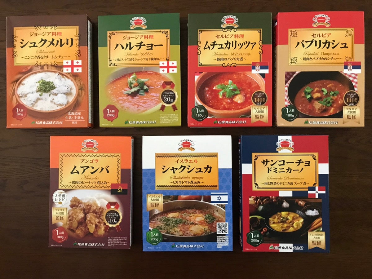 ジョージア料理シュクメルリ、ジョージア料理ハルチョー、セルビア料理ムチュカリッツァ、セルビア パプリカシュ、サンコーチョ・ドミニカーノ、アンゴラ ムアンバ、イスラエル シャクシュカ、ポルトガル料理ソパ・デ・バカリャウ など日本でまだ馴染みのない料理を大使館の協力を得て本格感を追求しながらシリーズ展開しております。