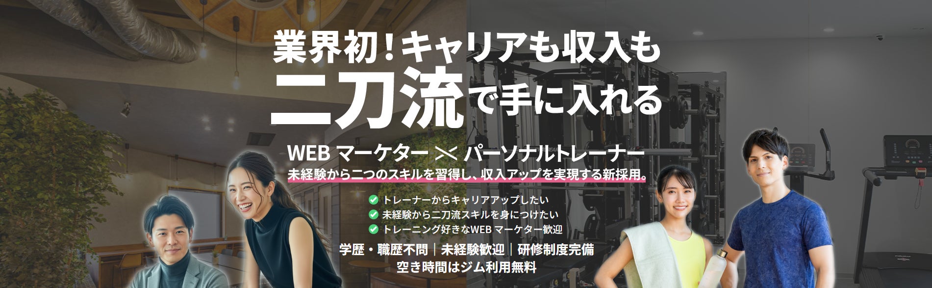 ※Webマーケティング職とパーソナルトレーナー職を同時に行う採用制度として(自社調べ)