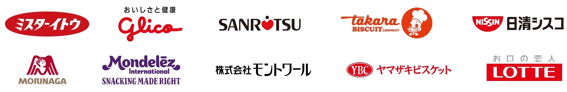 イトウ製菓(株)、江崎グリコ(株)、三立製菓(株)、宝製菓(株)、日清シスコ(株)、森永製菓(株)、モンデリーズ・ジャパン(株)、(株)モントワール、ヤマザキビスケット(株)、(株)ロッテ ※五十音順