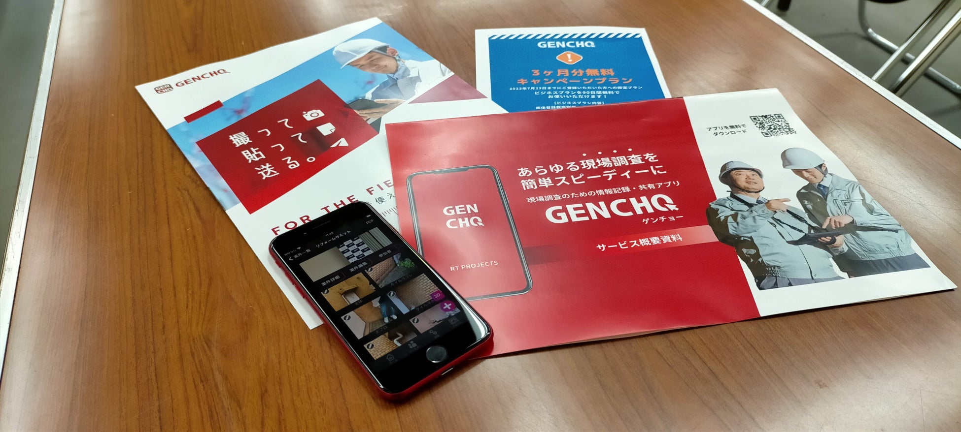 「GENCHO」はスマホやタブレット一つで、簡単操作可能な「現場調査のために作られた情報共有アプリ」です。