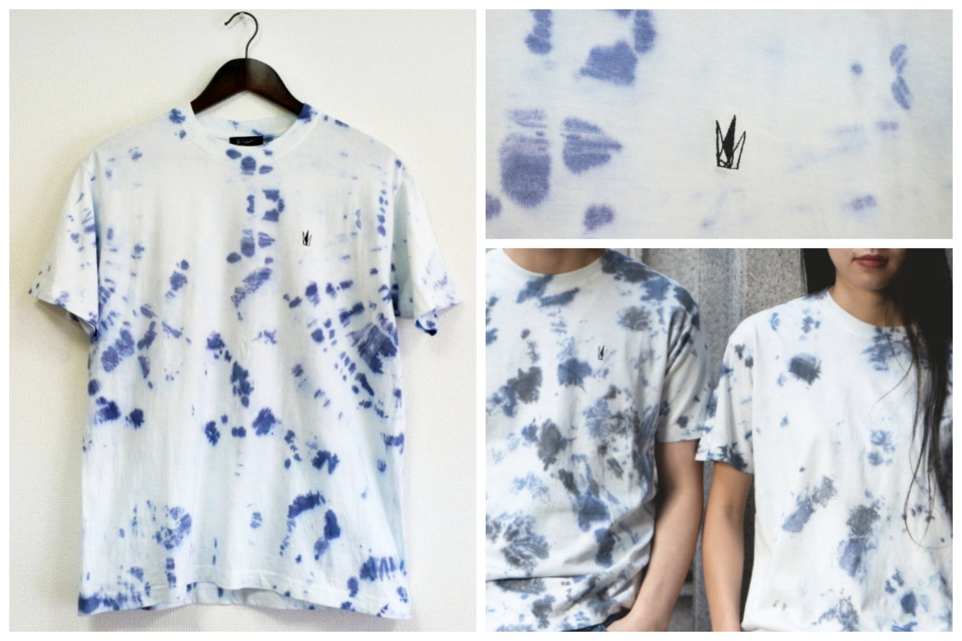 生地にはオーガニックコットンを使用しており、染めに使われる染料は地球環境に配慮したものを厳選しています。一着一着を手作業で染めているため、同じものはこの世に二着となく、全て柄の入り方や表情に違いがあり、他と被ることのない完全オリジナルTシャツです。