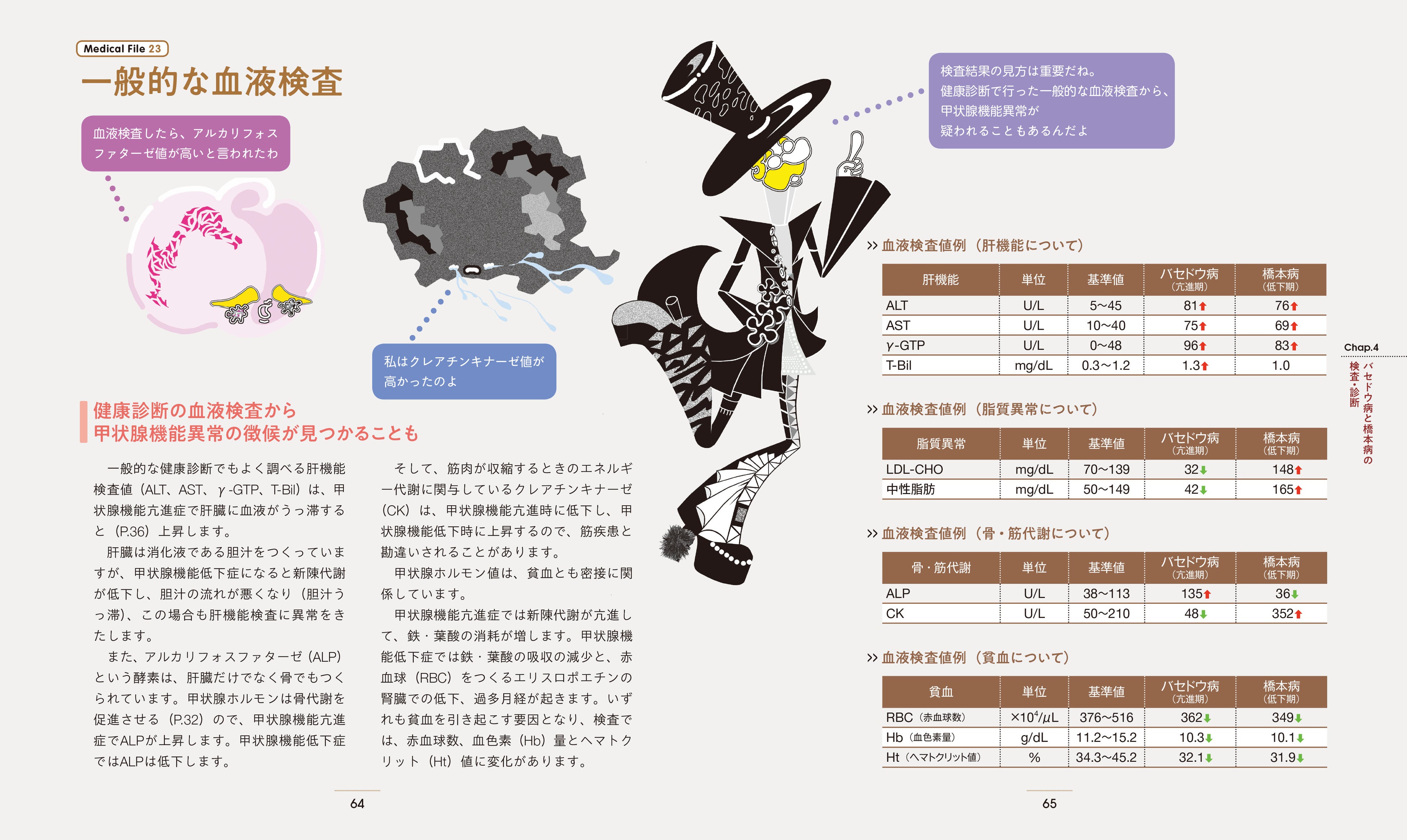 バセドウ病のバセ子と橋本病のハッシーが、甲状腺博士とともにガイド役を務めます。