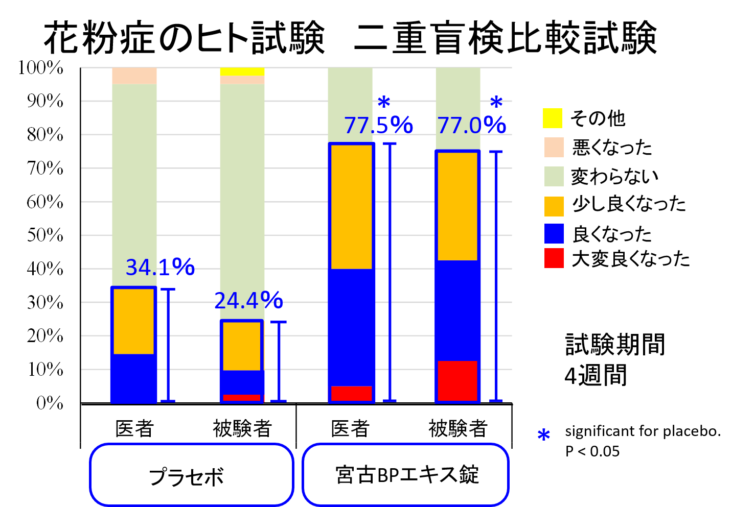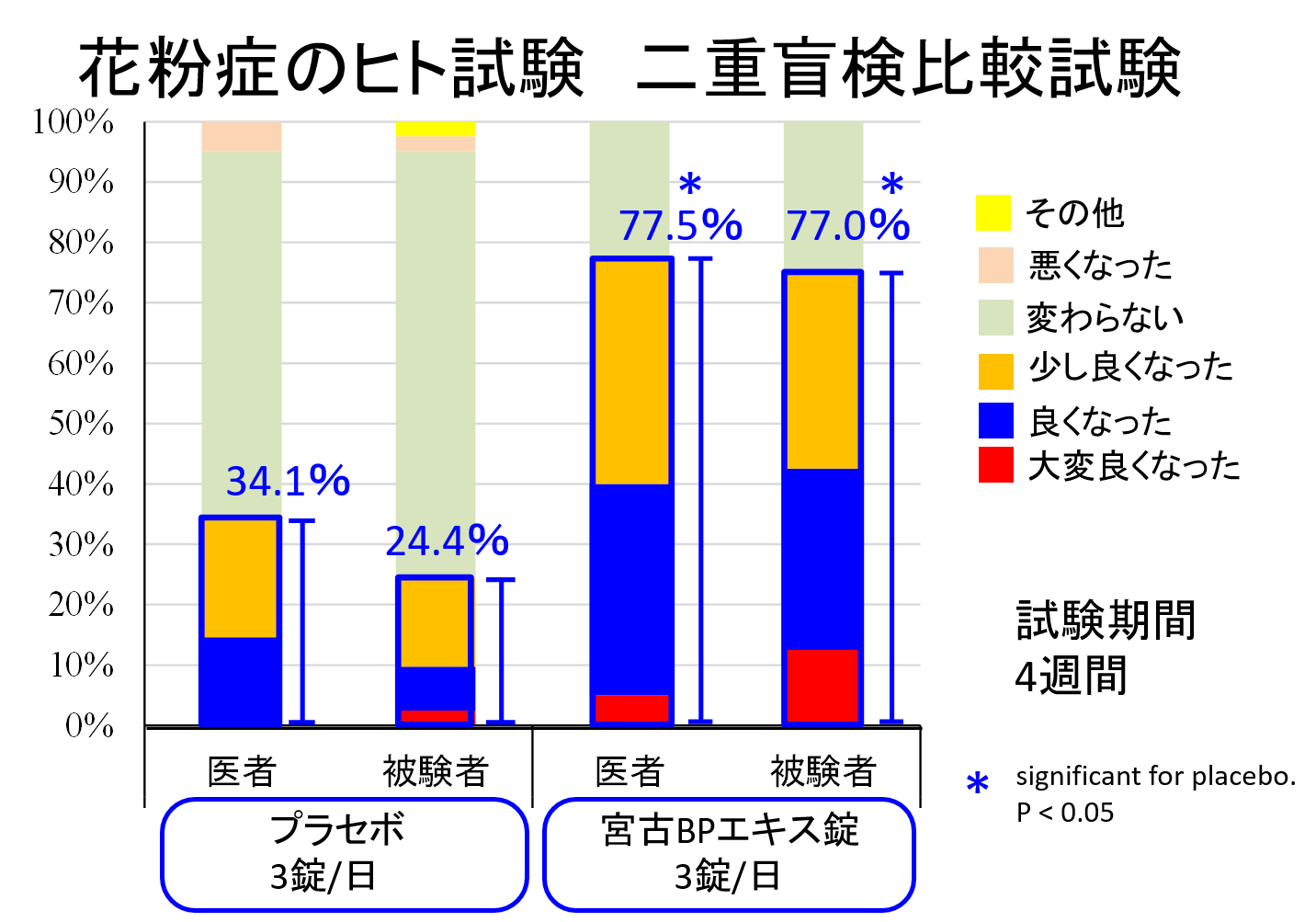 試験対象者:花粉などによる目や鼻の不快感を有する81名(病者ではなく健常者)