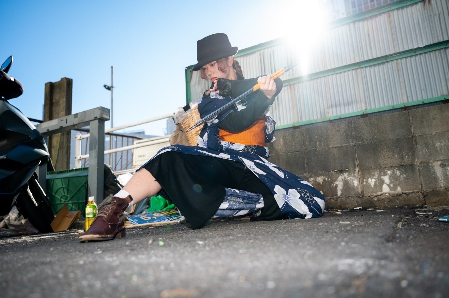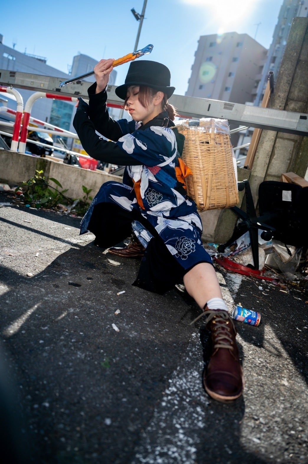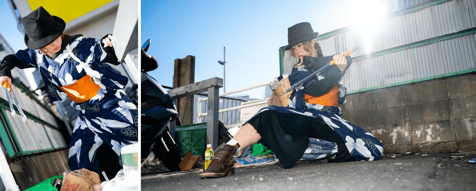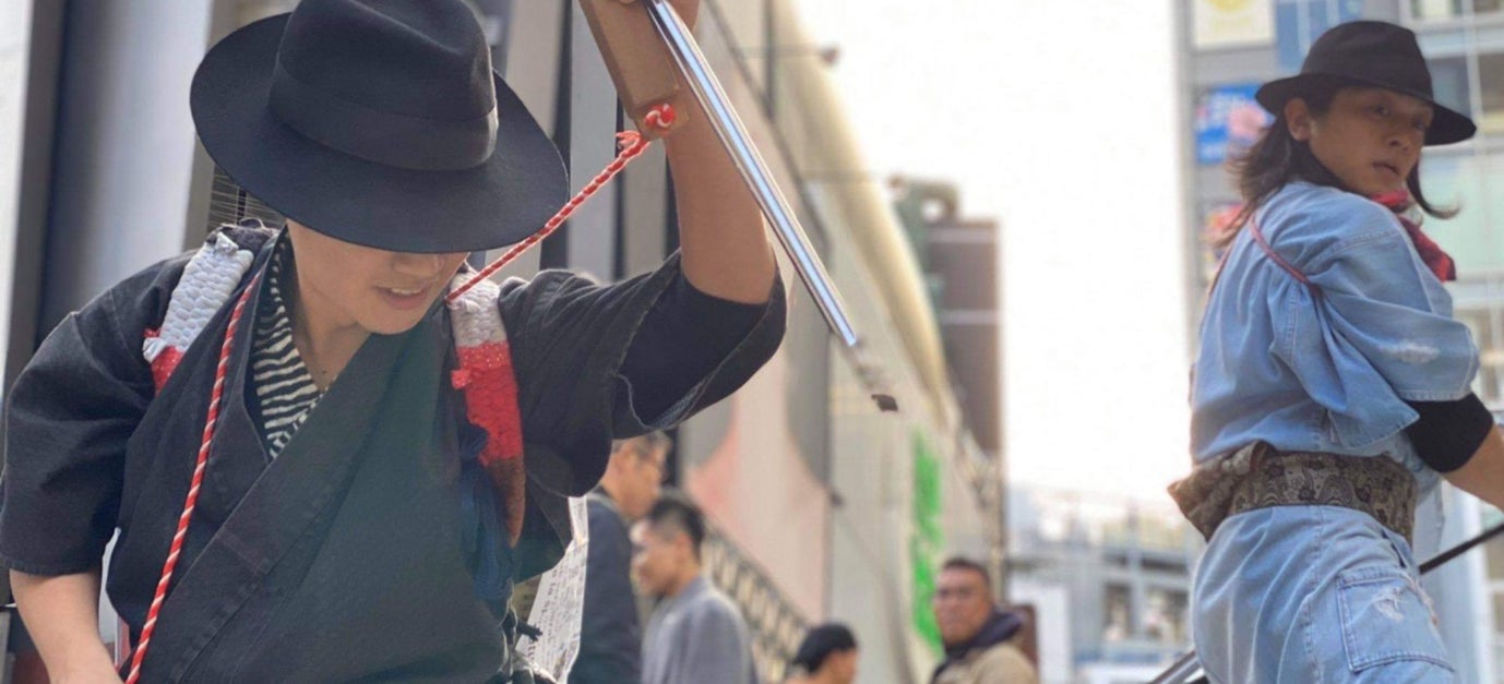 着流しデニムに中折れハットのコスチュームを身にまとい、火ばさみ、ほうきを帯刀し、火ばさみを2つ使った二刀流で路上のゴミ拾い&チャンバラパフォーマンスを行う、TikTokのフォロワー624,800人の超人気エンターテイメントゴミ拾い集団。
